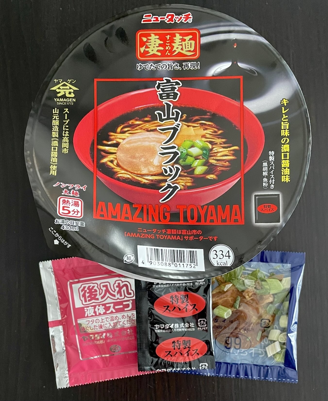 麺をすすると黒胡椒のピリッとする感覚を口に残しながら濃厚な醤油の旨味を愉しめていつものように美味しい、でも変化については感じる力も表現する力も及ばすといったところでしたが、そのあとレンゲ満杯分のスープをコクリと飲んでみると、前からこんなに魚粉を感じたっけ?これはパワーアップしたんじゃないの?!そういえば昨年11月現地で2軒目にいただいた富山ブラックも魚粉が効いてたよな、なんてことを思い出しながら凄麵富山をますます好きになりました(^^)