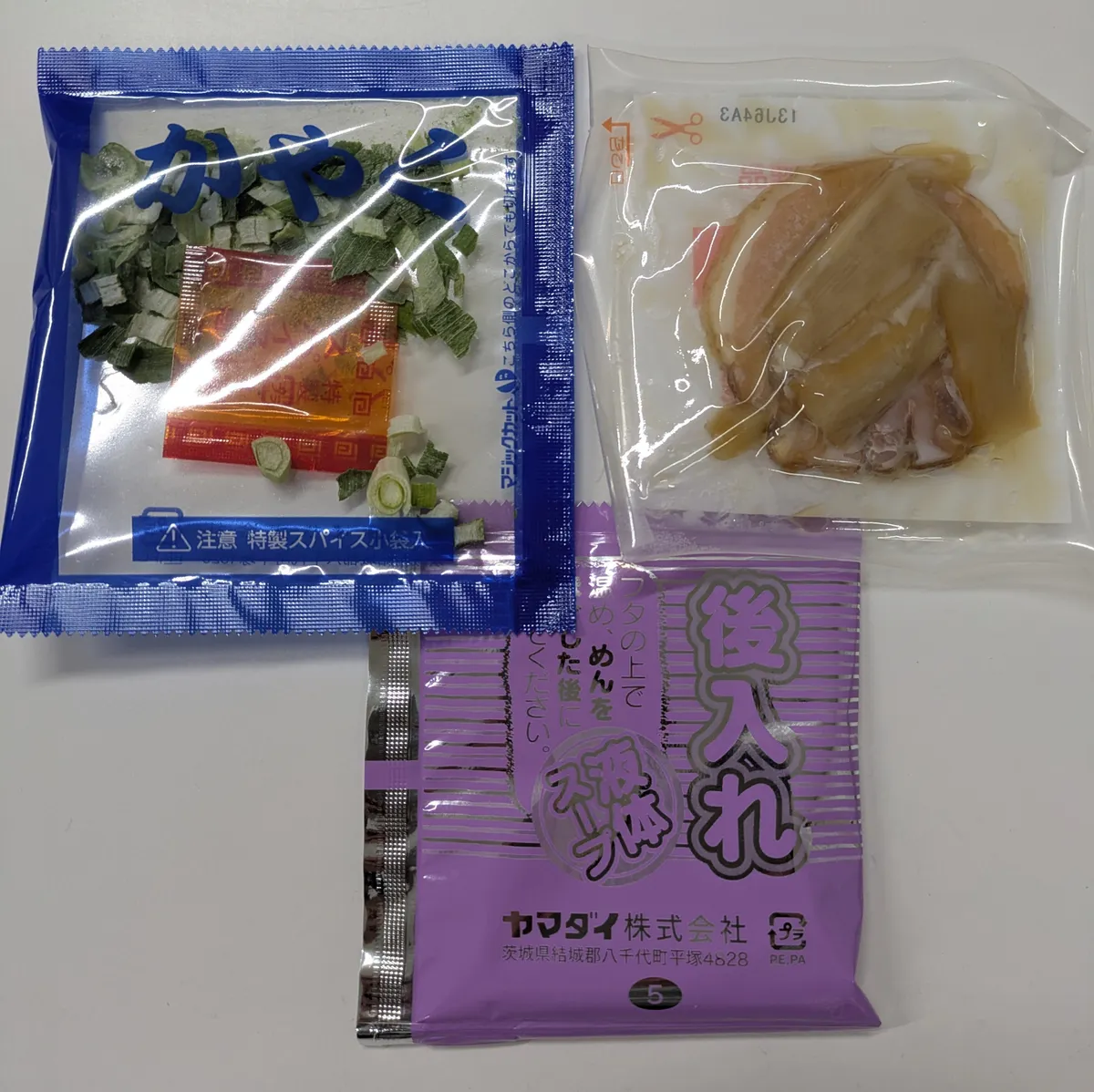 まずびっくりしたのがかやく袋の中に液体スパイスが内包されてること。。