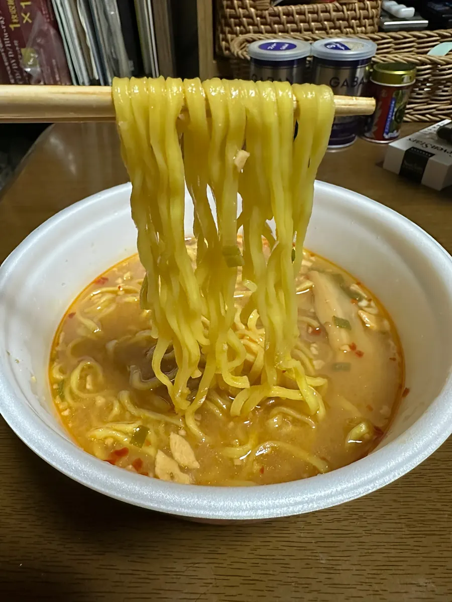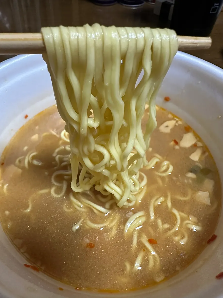 悪くはないんですけどね、麺が吉山麺なのでやはり硬いです。個性的な大蒜スープに麺が絡んでいないように感じました。ノンフライ麺を使うにしても明星の逸品のような細めの麺だといいかもしれません。