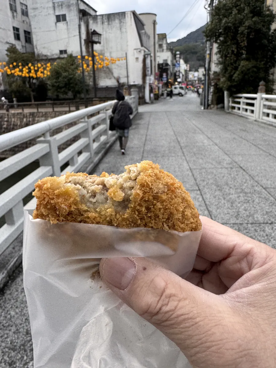 参道の近くのお肉屋さんのメンチカツも絶品でした😋