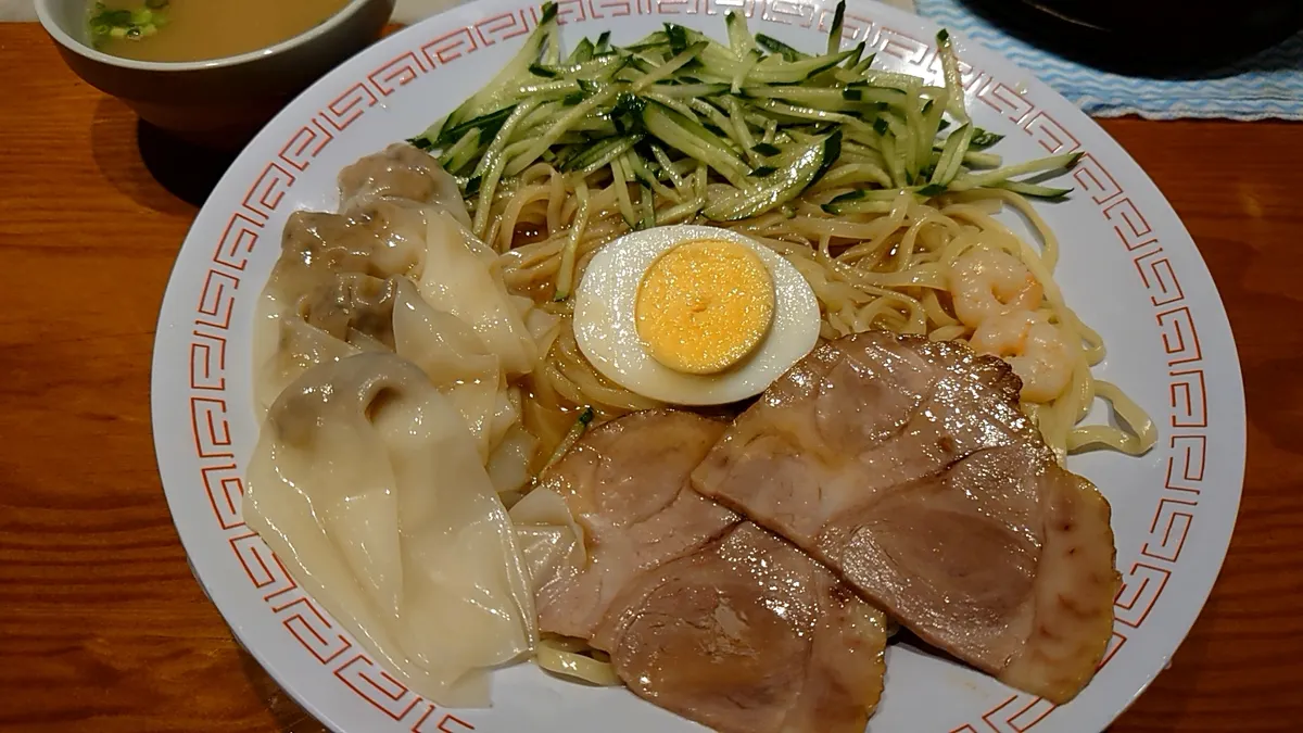 少し硬めの平打ち麺。冷やし中華の酸味に少しピリ辛と出汁の味。お客さんで呉出身の人が店長と話していて、懐かしい味ーと言っていたので、多分これであっているんだと思います。