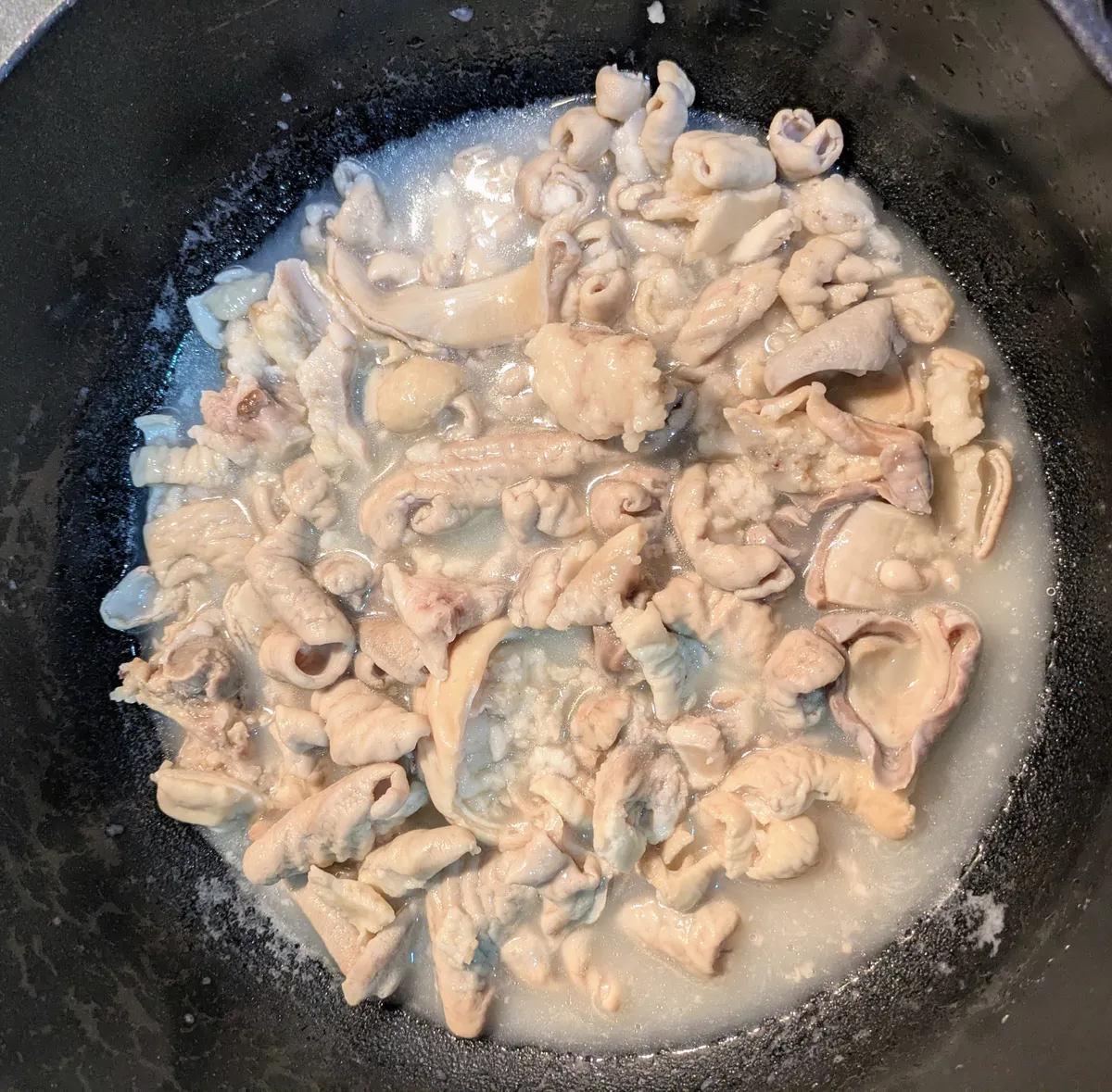 投稿を表示私がモツ煮を作る時は4回くらい茹でこぼしをした後ごま油に生姜を入れて炒めてから使います。