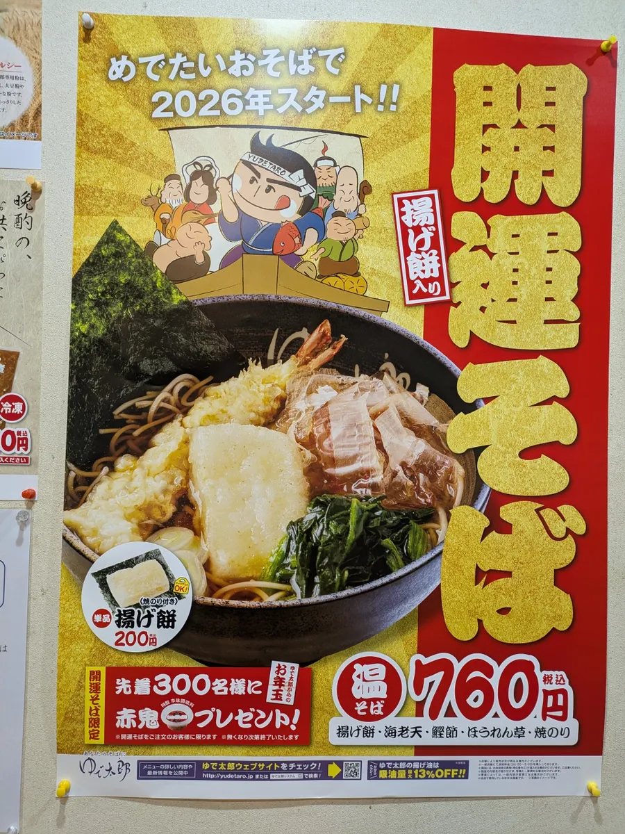 トップ > 今日の凄メシ! > 凄メシ 出会いました! > ゆで太郎の開運そば みんとり 2026/01/10 22:43 ゆで太郎の開運そば お餅乗ってるのにそそられて 開運そば、ほうれん草も海老天も海苔とお餅も食べられて美味しかったです〜 先着300名が貰える「お年玉」=手作り辛み調味料の赤鬼(定価250円)も間に合ってうれしい! 揚げ餅は焼海苔付きで別のお蕎麦のトッピングとして注文も出来るし、テイクアウトも出来てよろしいですな! ゆで太郎 いちおう全国展開チェーン 12年前には台北支店もあったw いいね 共有する 共有する X facebook LINE リンクをコピー コメントする 11 件の返信 (新着順) ミュートしたユーザーの投稿です。 投稿を表示 kani 2026/01/15 11:07 ゆで太郎好きです! 看板のゆでの、ゆの字と目が合うと行かねばってなります。 お年玉赤鬼〜幸先良さそうです✨ いいね 返信する ミュートしたユーザーの投稿です。 投稿を表示 みんとり 2026/01/15 12:56 kaniさん わかるーあの「ゆ」の字には何か魔法がかけられてますよね! いいね 返信する ミュートしたユーザーの投稿です。 投稿を表示 とはる 2026/01/12 13:57 みんとりさん 海苔餅にして、この”赤鬼”をかけた醤油につけて食べてみたいです!!! いいね 返信する ミュートしたユーザーの投稿です。 投稿を表示 みんとり 2026/01/12 17:40 とはるさん それ絶対(゚д゚)ウマーなやつー! いいね 返信する ミュートしたユーザーの投稿です。 投稿を表示 39 2026/01/12 00:25 絶食乗り越えたご褒美ですね😊 開運御利益ありますように🙏✨ いいね 返信する ミュートしたユーザーの投稿です。 投稿を表示 みんとり 2026/01/12 02:58 39さんありがとうこざいます🥹 いいね 返信する ミュートしたユーザーの投稿です。 投稿を表示 くろねこ 2026/01/11 16:16 赤鬼‼️凄麺味噌シリーズのアクセントに よ さ げ ✨️ ですね〜♪ 優しい赤鬼なら大丈夫ですよね😊 いいね 返信する ミュートしたユーザーの投稿です。 投稿を表示 みんとり 2026/01/11 16:32 くろねこさん ( ゚д゚)ハッ!ナイスアドバイス キタ━━━━(゚∀゚)━━━━!! スゴ活で試してみます ありがとうこざいます いいね 返信する ミュートしたユーザーの投稿です。 投稿を表示 あひるん 2026/01/11 12:04 退院おめでとうございます。 お年玉も間に合って、良い結果や治療などで改善できますように! いいね 返信する ミュートしたユーザーの投稿です。 投稿を表示 みんとり 2026/01/11 13:44 あひるんさん 有難うございます😊 ほんと!開運ご利益で治療方針決まって快方に向かうとうれしいですねー いいね 返信する ミュートしたユーザーの投稿です。 投稿を表示 はにんどう 2026/01/11 09:24 赤鬼、欲しいかも! 汗かきかき食べることになるだろうけどw いいね 返信する ミュートしたユーザーの投稿です。 投稿を表示 みんとり 2026/01/11 09:28 はにーさん そんな辛辛じゃないんですよ 優しい赤鬼さんて感じ👹←この絵文字怖ッ いいね 返信する ミュートしたユーザーの投稿です。 投稿を表示 ゲーマーママ 2026/01/11 08:50 お餅が入っていると嬉しいですね🍀 お蕎麦にもおうどんにもラーメンにもお粥にも😄 いいね 返信する ミュートしたユーザーの投稿です。 投稿を表示 みんとり 2026/01/11 09:13 そうなんですーお餅! 汁物全てに入れてもいいと思っちゃいます!! いいね 返信する ミュートしたユーザーの投稿です。 投稿を表示 はみちゃん 2026/01/11 07:27 お蕎麦にほうれん草っていうのが凄いです。 でも、盛りだくさんで美味しそうですね❤️ いいね 返信する ミュートしたユーザーの投稿です。 投稿を表示 みんとり 2026/01/11 08:11 はみちゃんさん え? そばの具にほうれん草、やりません? ウチのほうの年越しそばではデフォだったのですが。。 いいね 返信する ミュートしたユーザーの投稿です。 投稿を表示 ゲーマーママ 2026/01/11 08:49 お蕎麦にほうれん草 わが家では定番です。 合いますよ🍀 いいね 返信する ミュートしたユーザーの投稿です。 投稿を表示 みんとり 2026/01/11 09:08 ゲーマーママさん ホッとしました😊 お雑煮みたいに地域によってお蕎麦の具にも違いがあるのかもしれませんね いいね 返信する ミュートしたユーザーの投稿です。 投稿を表示 Ken 2026/01/11 04:32 広島にはゆで太郎がないので、羨ましいです😅 広島でそばのチェーン店と言えば「とんぼ」さんがありますが、まだここ行けてません😢 いいね 返信する ミュートしたユーザーの投稿です。 投稿を表示 みんとり 2026/01/11 05:43 Kenさん 『そば処 とんぼ』、検索したらメニューに揚げもみじやチー坊もあって気になりました😆 いいね 返信する ミュートしたユーザーの投稿です。 投稿を表示 たうい@おおさか 2026/01/11 01:51 おはようございます♬ 開運そば、ボリュームあっていいですね! 節分くらいまでの品揃えでしょうか? こちらにはゆで太郎がないんですよね~ うどんの丸亀は山程あるのに手軽なお蕎麦屋さんがありません いいね 返信する ミュートしたユーザーの投稿です。 投稿を表示 みんとり 2026/01/11 05:18 たう