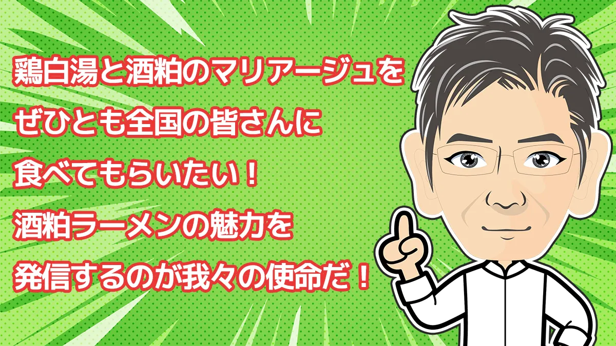 「鶏白湯と酒粕のマリアージュをぜひとも全国の皆さんに食べてもらいたい!酒粕ラーメンの魅力を発信するのが我々の使命だ!」