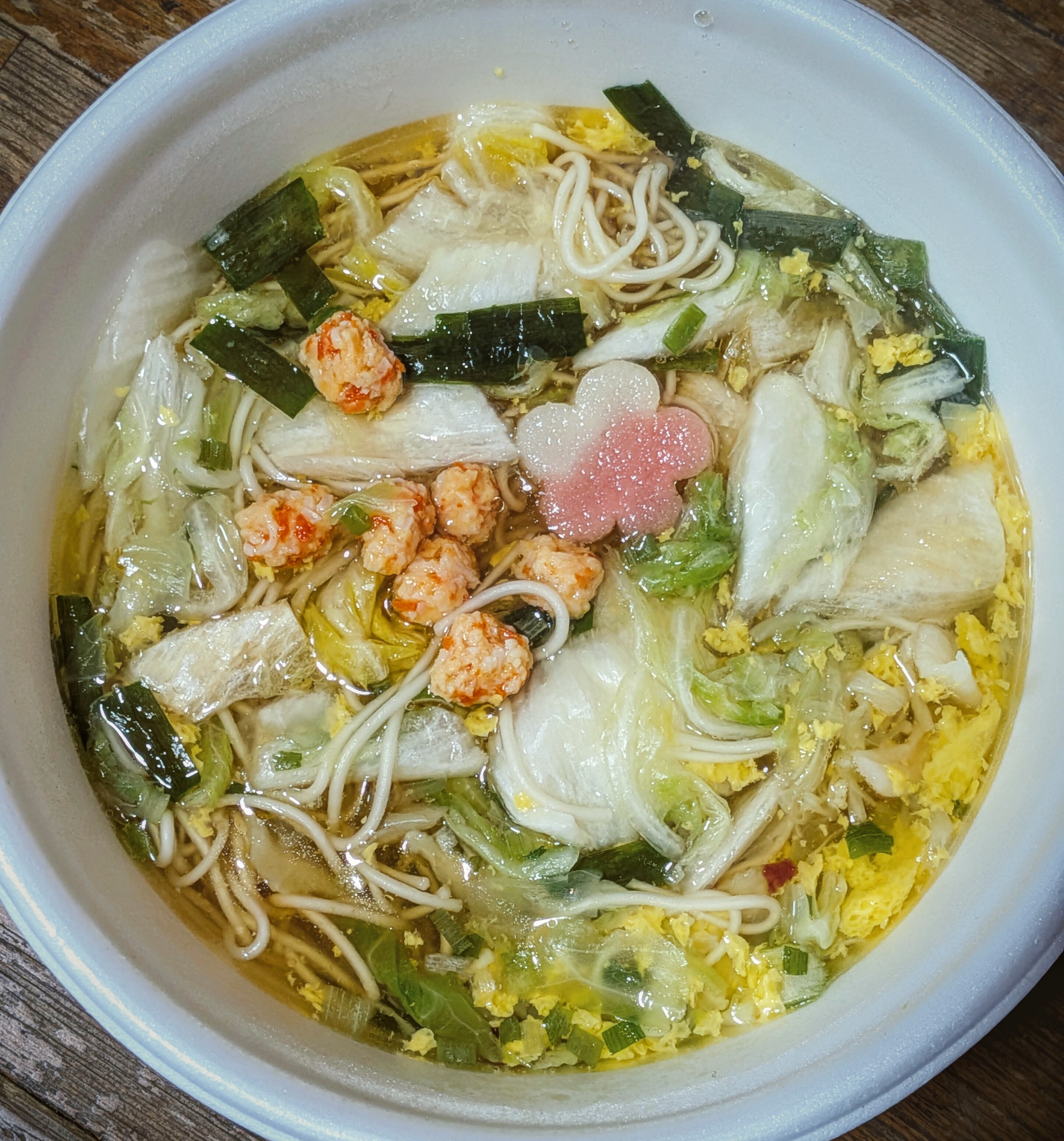 もうこの際ですからスペシャルかやく「ふわたまきゃべぇび」のえび団子も里山ということで合わせましょう。