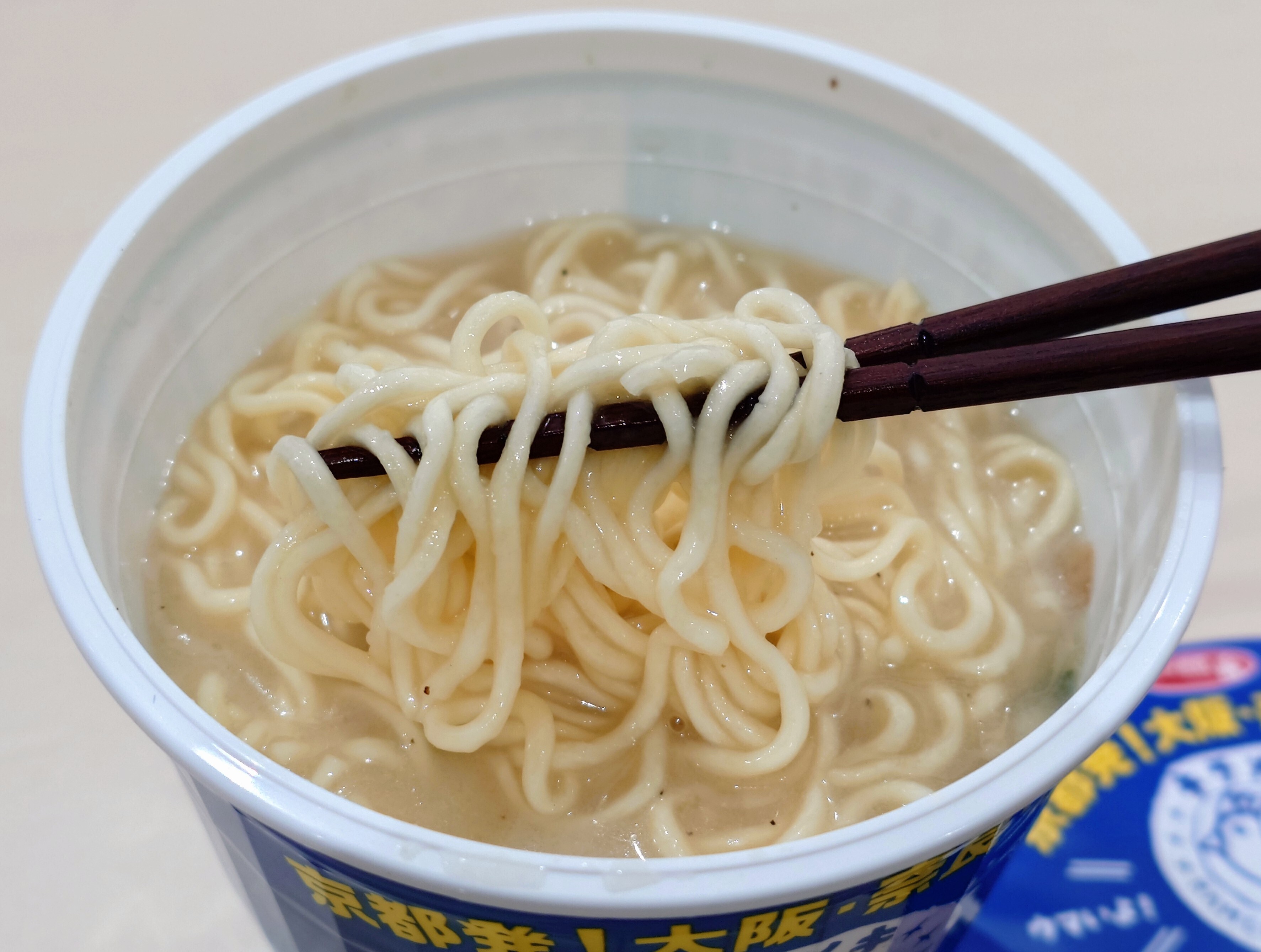 トップ > 今日の凄メシ! > 凄メシ 出会いました! > 本日は「キラメキ」です 中電前の八百屋 2026/03/30 07:51 本日は「キラメキ」です 今朝は「(他社) ポロイチ キラメキノトリ 濃厚鶏白湯 塩のキラメキ」をいただきました。 スープは、鶏の旨みが強くてトロ味のあります。 黒コショウも結構効いています。 中太麺はモッチリ感があって、トロトロのスープと一緒に口に入って来て、麺をすする毎にスープも減っていく感じです。 鶏の風味とコショウのアクセントが良いですね。 濃厚なスープですが、後味がくどくなくて、なかなか美味しかったです。 ごちそうさまでした。 サッポロ一番 キラメキノトリ 濃厚鶏白湯 いいね 共有する 共有する X facebook LINE リンクをコピー コメントする 1 件の返信 (新着順) ミュートしたユーザーの投稿です。 投稿を表示 新華 2026/03/30 11:38 美味しそうですね! 「近畿のローソン」と「全国のローソン」という記述がありますがどちらなのでしょうね? ダメ元で後で近場のローソンに行ってみます(^^) いいね 返信する