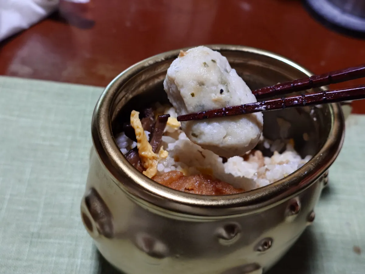 トップ > 今日の凄メシ! > 凄メシ 出会いました! > 昨晩は「金のふぐ」でした 中電前の八百屋 2026/02/11 08:41 昨晩は「金のふぐ」でした 昨日、届いた「淡路屋 金のふぐ弁当」を昨晩いただきました。 このまま電子レンジに入れられるかな? と考えましたが、そのままレンジへ。失敗でした。 陶器だけがチンチンになって、お弁当は冷たいまま。酔ってたので仕方なくそのままいただきました。 ふぐの唐揚げ ふぐのお肉 ふぐのつみれ ふぐ出汁で炊いたご飯も良いお味。 大変美味しい釜めしでした。 ごちそうさまでした。 淡路屋 金のふぐ弁当 いいね 共有する 共有する X facebook LINE リンクをコピー コメントする 2 件の返信 (新着順) ミュートしたユーザーの投稿です。 投稿を表示 くろねこ 2026/02/11 20:52 いや〜美味そう🤣 フグ出汁で炊いたご飯、食べたことないです。 峠の釜は500w何分だったかで温まるので 陶器なら温まると思うのですが🤔 いいね 返信する ミュートしたユーザーの投稿です。 投稿を表示 中電前の八百屋 2026/02/12 05:56 おはようございます。 金色の塗料?釉薬かな? がダメなのではないかと思いました。ホントに周りだけが持てないくらいチンチンでしたね。 中身は全然温まってなかったです。 いいね 返信する ミュートしたユーザーの投稿です。 投稿を表示 くろねこ 2026/02/12 06:08 確かに、金色塗料が電磁波通さないかも知れませんね。 温めは蒸すしかないのか🤔 いいね 返信する ミュートしたユーザーの投稿です。 投稿を表示 クロネコ 2026/02/11 11:26 なるほど。色は金色でも陶器なのですね。でも陶器は熱くなりやすく割れることがあるとか。 我家では昔娘が生卵殻付きを投入して爆破させたことがあります。 金色といえば金の鯱鉾。しゃちほこって魚類なんですかね?😸 いいね 返信する