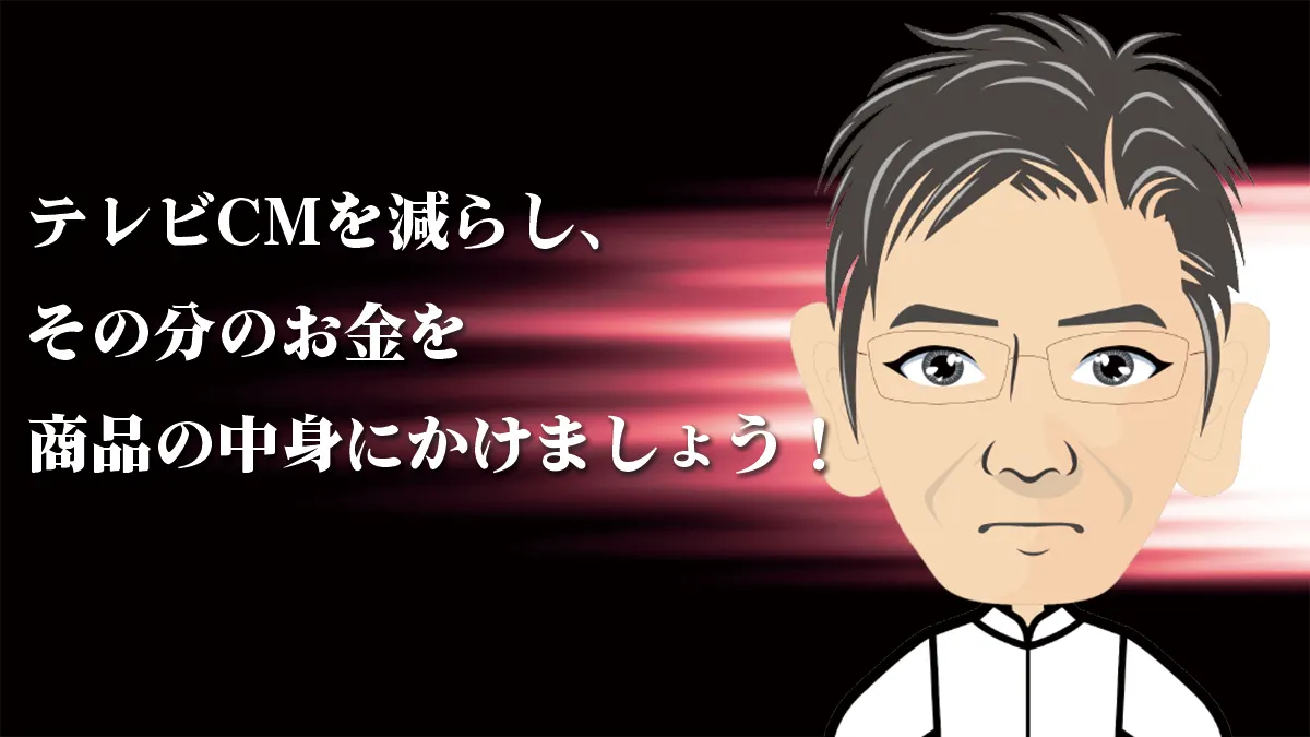 「テレビCMを減らし、その分のお金を商品の中身にかけること」