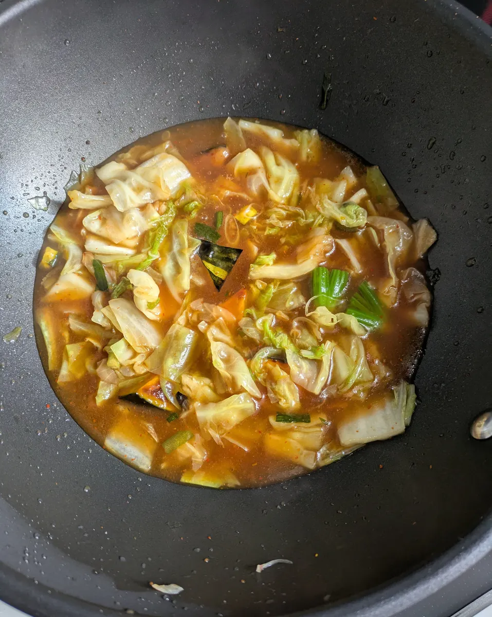 トップ > 今日の凄メシ! > 凄麺 食べました! > 野菜の甘さと唐辛子の辛みが美味い くろねこ 2026/01/03 13:08 野菜の甘さと唐辛子の辛みが美味い 体重計に乗ったら+2kg‼️年末年始1日200g程度成長している計算🤔 って事で、野菜をとりましょう! 甘、辛増し茨城スタミナ食べるでしょ😊 白菜、キャベツ、かぼちゃ、ほうれん草の根部分を炒めて一味をパラパラパラパラパラパラ… 付属の具材、タレを入れ煮込み熱々に🔥 5分待ったら… はい完成👏👏👏 凄麺シリーズのトロミ系はグツグツ火入れする事でより トロミが増します。絡み方が半端ないです😊 美味しかった!お腹も満足👍️では横になります。 ご馳走様🙏でした💤 茨城スタミナの良さ再実感 いいね 共有する 共有する X facebook LINE リンクをコピー コメントする 2 件の返信 (新着順) ミュートしたユーザーの投稿です。 投稿を表示 新華 2026/01/04 12:36 麺を引き上げるのに一苦労しそうなくらい野菜がドッサリですね! ベースに茨スタをチョイスするあたりがさすがだなぁって思いました😃 いいね 返信する ミュートしたユーザーの投稿です。 投稿を表示 くろねこ 2026/01/04 13:18 左手スマホ、右手麺上げ プルプルしてますよ😅毎回w 茨城スタミナ、食べれば食べるほど 良さがわかってきます。 いいね 返信する ミュートしたユーザーの投稿です。 投稿を表示 ガチオ 2026/01/03 23:47 おーー!これですね〜〜 ちゃんと撮れてますね! 失敗しないなんてすごい! ボクなんて何回失敗したことか 笑 いいね 返信する ミュートしたユーザーの投稿です。 投稿を表示 くろねこ 2026/01/04 03:28 ヤカンで入湯写真の巨匠 ガチオさんに認められる1枚が撮れて 良かったです🤣✨️ いいね 返信する