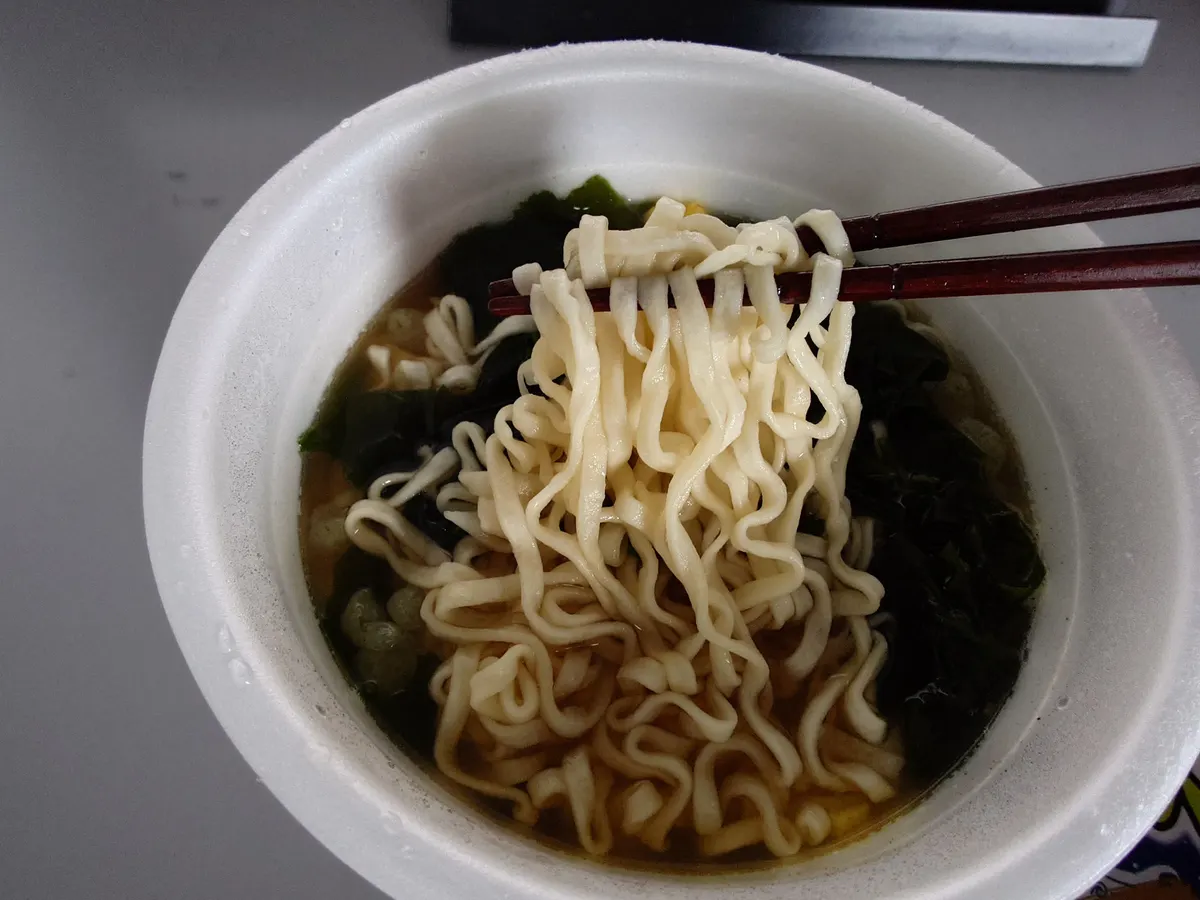 トップ > 今日の凄メシ! > 凄メシ 出会いました! > お昼は「他社 わかめうどん」です 中電前の八百屋 2026/01/28 12:52 お昼は「他社 わかめうどん」です 昼食のお供に「イトメン わかめうどん」をいただきました。 ちょっと食べ過ぎ。 まぁ、わかめの量は良いくらいです。わかめがスープを吸って大きくなった分、スープが減ってます。 うどんの麺は、かなりの細さでした。ラーメンの平打ち麺くらいです。まぁ、待ち時間が3分ですから。 謳っているように、海の香は漂ってます。 食べ進めると、スープがかなりしょっぱくなってきました。わかめが水の量を減らして、また、わかめから塩分が出たような感じです。 次はないと思います。 ごちそうさまでした。 わかめうどん 細いうどん いいね 共有する 共有する X facebook LINE リンクをコピー コメントする 3 件の返信 (新着順) ミュートしたユーザーの投稿です。 投稿を表示 まぼさく 2026/01/28 23:04 イトメンさんの商品はこちらでも入手難です。 でもカップの播州ラーメンは食べてみたいです😊 いいね 返信する ミュートしたユーザーの投稿です。 投稿を表示 まちこしまこ 2026/01/28 18:00 はじめまして!! まちこしまこと申します。 私が住む佐賀では売っていないメーカーさんの カップ麺なので興味津々です^^ と、思って拝見しているとネギトロ丼がいてビックリしましたw いいね 返信する ミュートしたユーザーの投稿です。 投稿を表示 中電前の八百屋 2026/01/28 19:54 まちこしまこ さん はじめまして、そうですかイトメンの商品は売ってませんか。こちらの地域でもなかなか売ってませんね。時々見かける程度です。 私が子供の時(50年前)でもCMはやってましたが、代表は「チャンポンめん」ですかねぇ。 カップ麺はあまり出てないみたいで、袋麺が多いみたいですね。 いいね 返信する ミュートしたユーザーの投稿です。 投稿を表示 まちこしまこ 2026/01/28 20:17 そう言えば、 凄麺に出会ってからは袋麺を買っていないです!! いいね 返信する ミュートしたユーザーの投稿です。 投稿を表示 くろねこ 2026/01/28 16:08 ネギトロ丼が主役ですよね💡(笑) いいね 返信する ミュートしたユーザーの投稿です。 投稿を表示 中電前の八百屋 2026/01/28 17:27 そうですね。主役はネギトロ丼ですよ。 汁物が欲しくてうどんにしましたが、うどんは多すぎましたね。カップワンタンくらいにしとけば良かったです。 いいね 返信する