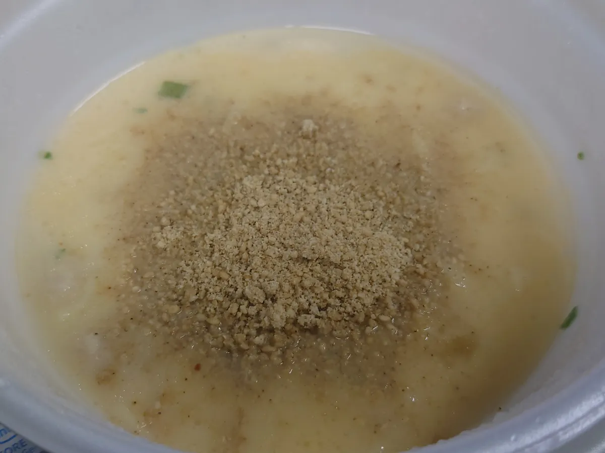 削り節や増えるわかめはちょっと違いそうだったので、博多豚骨用に買ってあったすりゴマを入れてみました。