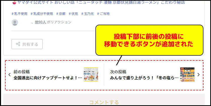 【機能追加のお知らせ】前後の投稿に移動できるようになりました
