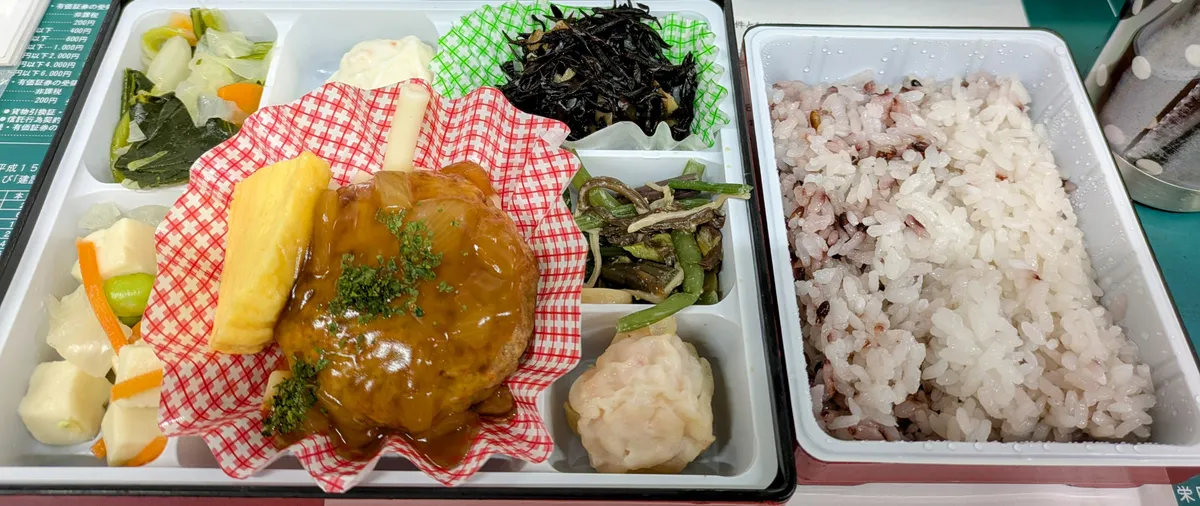 会社オーダーのハンバーグ弁当、ごはん混ぜ穀米だし美味しそうですね!