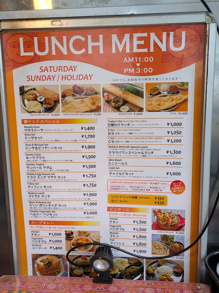 きのうは練馬区に用事がありランチは初訪問の南インド料理店ケララバワンで食べました