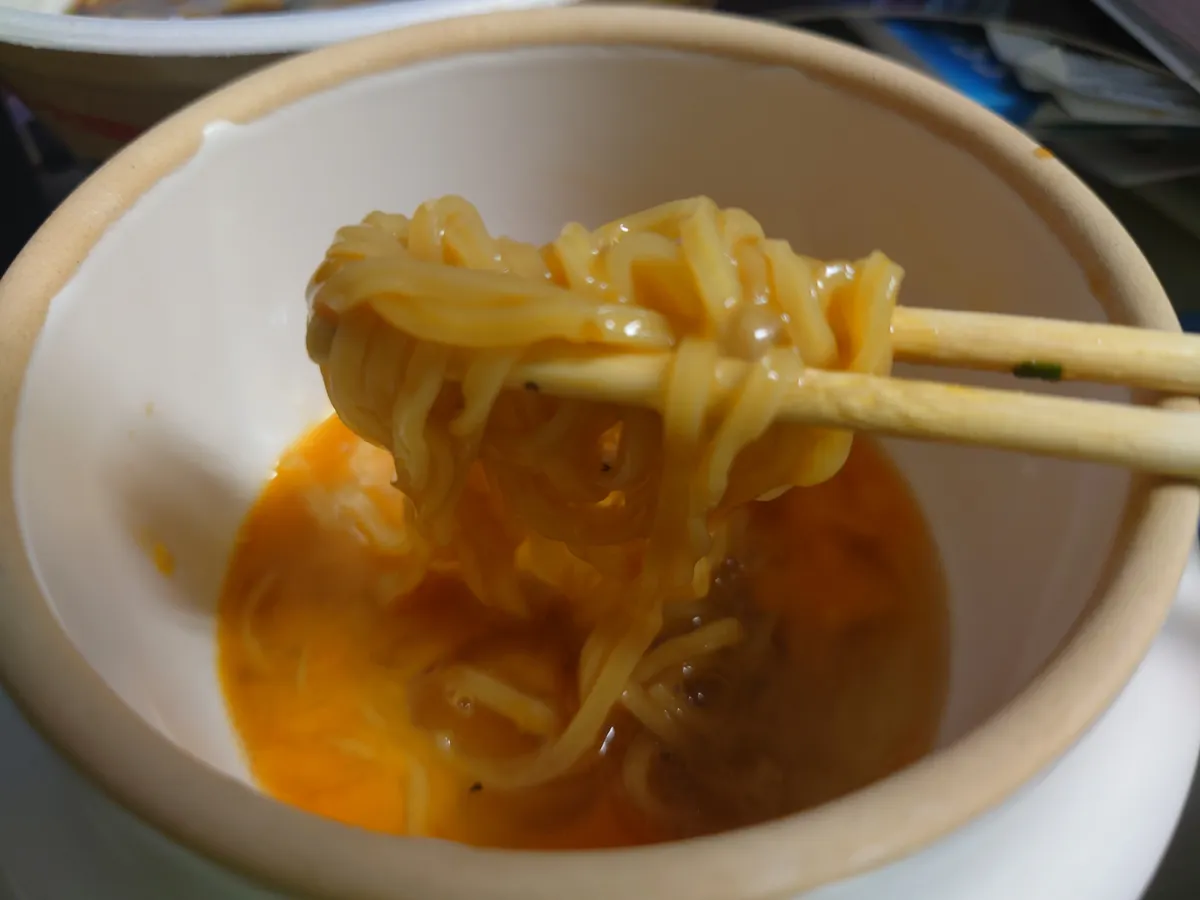 トップ > 今日の凄メシ! > 凄麺 食べました! > 富山ブラックW masa 2026/01/22 21:25 富山ブラックW 引き出しを開けたら、以前入れ忘れた富山ブラックの特製スパイスが! というわけで、富山ブラックです。 W特製スパイス、スタンバってます。 待っている間に 足上げてます。凄麺トレーニング!!職場です😅 スパイスがWなので、卵もW✌️ これをすき焼き風にすると、まろやかでいい感じになります。 いつもは完飲なのですが、凄麺健康チャレンジなので、スープは残しました。 凄麺健康チャレンジ 凄麺トレーニング 富山ブラック いいね 共有する 共有する X facebook LINE リンクをコピー コメントする 2 件の返信 (新着順) ミュートしたユーザーの投稿です。 投稿を表示 チョコマシュマロ 2026/01/22 22:00 masaさん😺 富山ブラック&益子ホワイト&卵イエローですね😼 卵につける発想はなかったなぁ〜😸 富山ブラックは近所で手に入らないので またいつかやってみますね😼 いいね 返信する ミュートしたユーザーの投稿です。 投稿を表示 masa 2026/01/22 22:22 富山ブラックの元祖と言われている西町大喜さんに行った時に知りました。メニューにちゃんと生玉子があります。 いいね 返信する ミュートしたユーザーの投稿です。 投稿を表示 masa 2026/01/22 21:35 卵の器は、富山ブラックに対抗して、益子ホワイトを選びました。たぶん峠の釜めしにはないカラーだと思います。 いいね 返信する