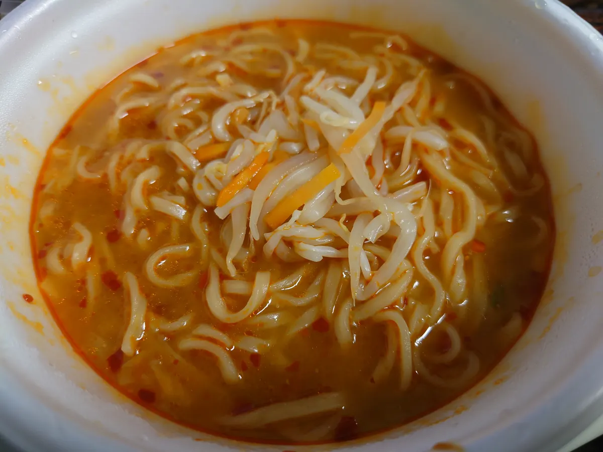 スープを入れて、シャキシャキもやしを乗せたら完成。
