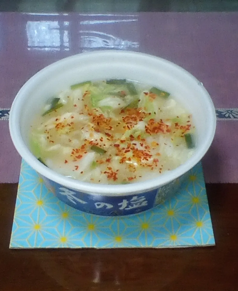 器の中の白菜は即席麺の具材とは思えない存在感です。