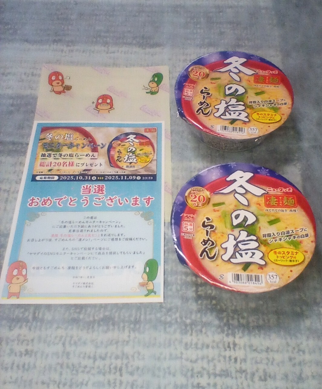 先日「冬の塩らーめんモニターキャンペーン」で戴いた「冬の塩らーめん」を食べました。