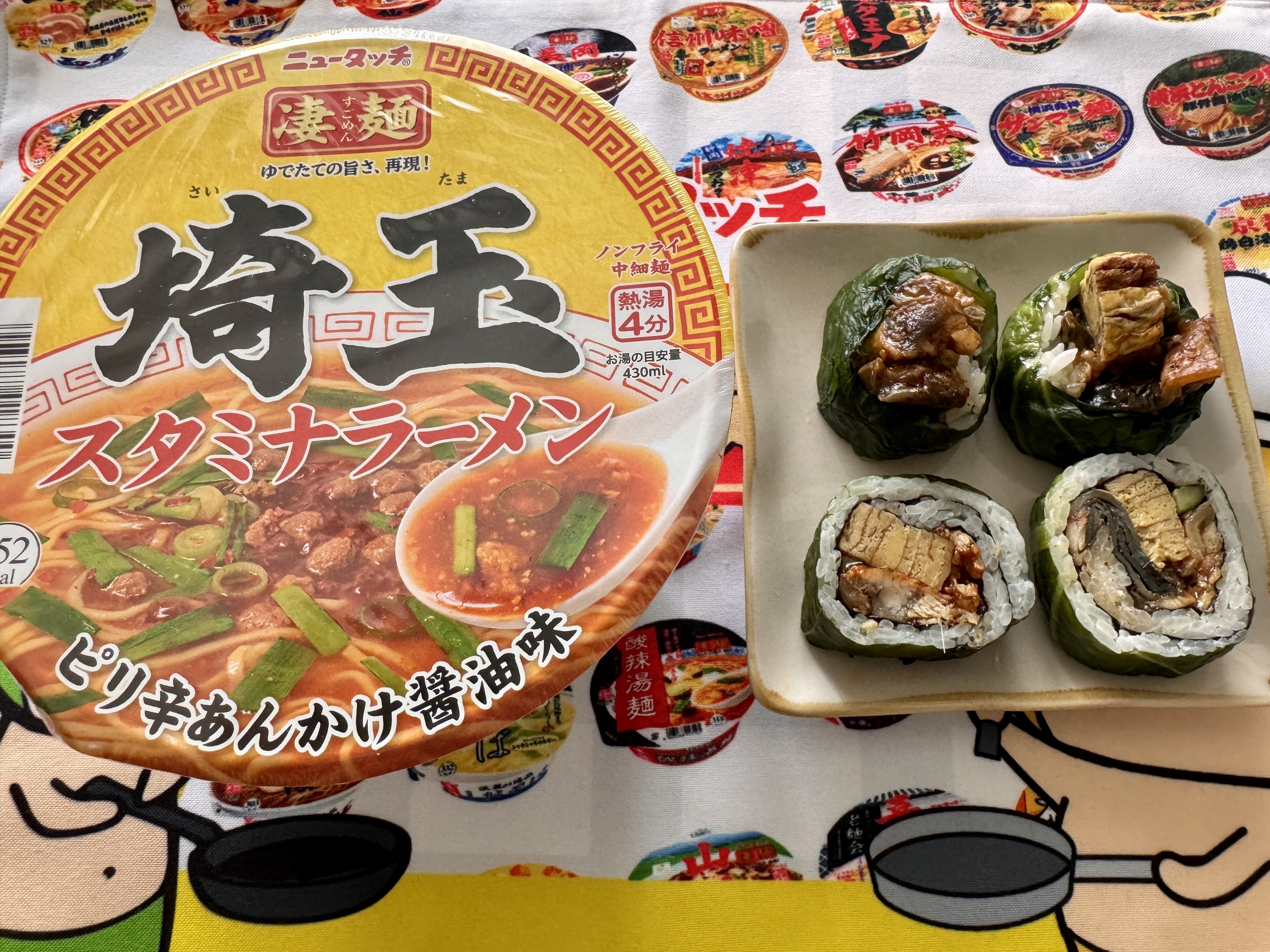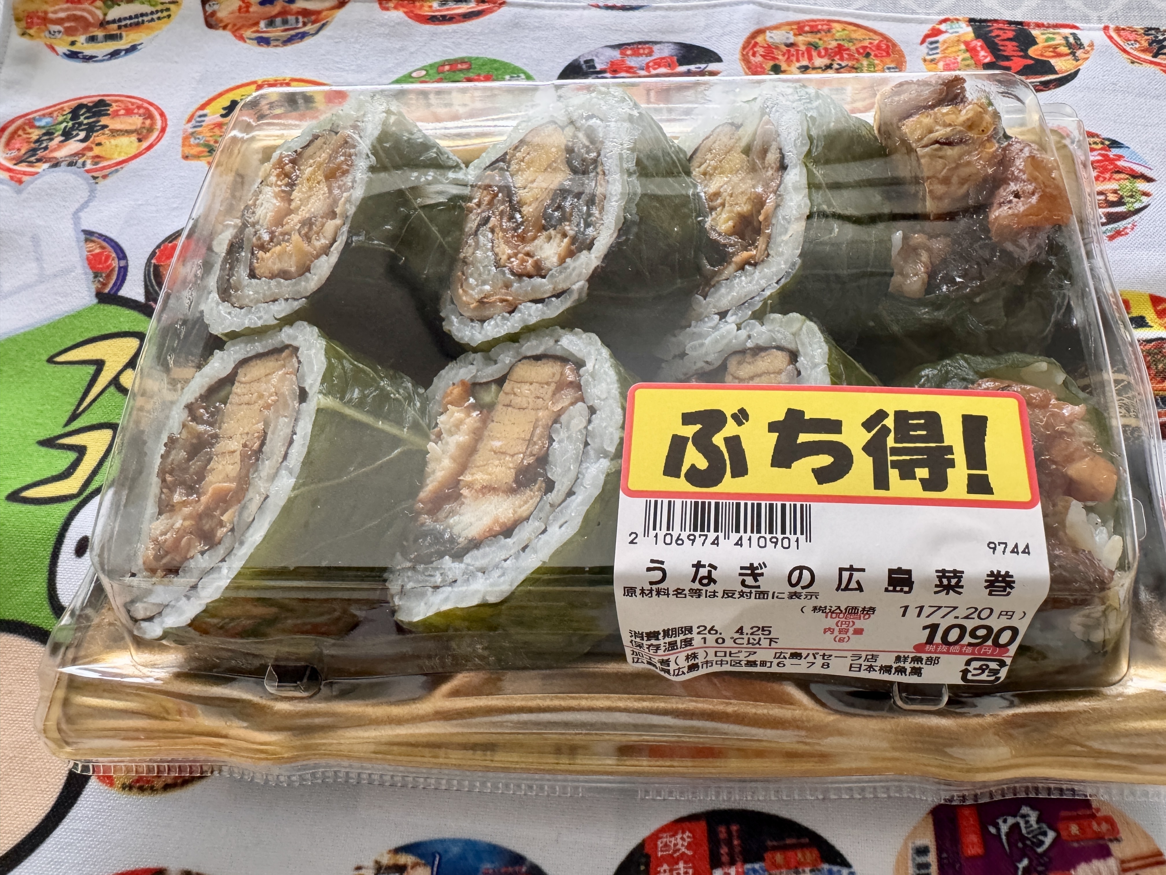 美味しそうな鰻と広島菜の巻き寿司買って、凄麺埼玉スタミナと一緒に頂きました😁