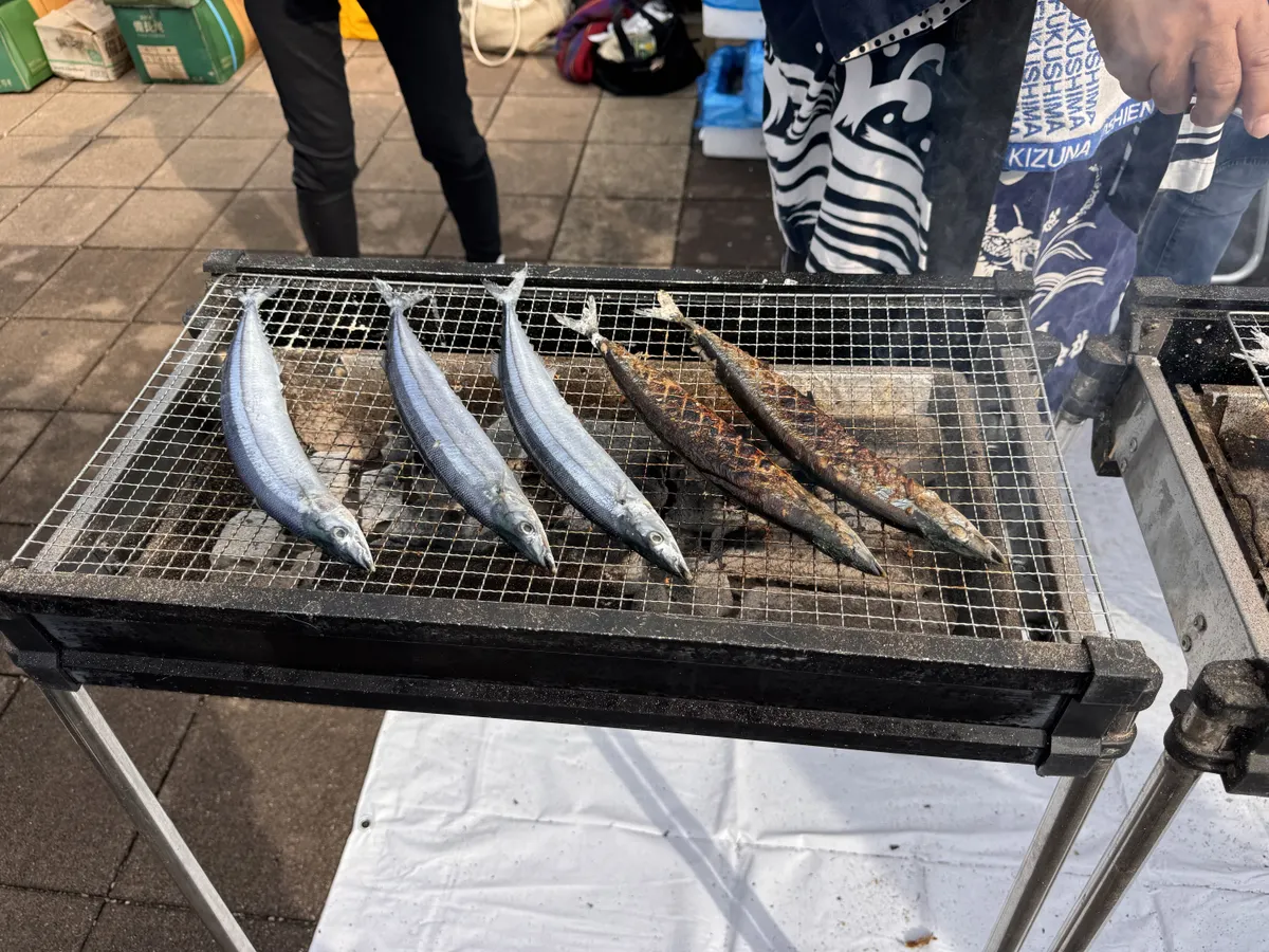 5匹焼かれているサンマ!