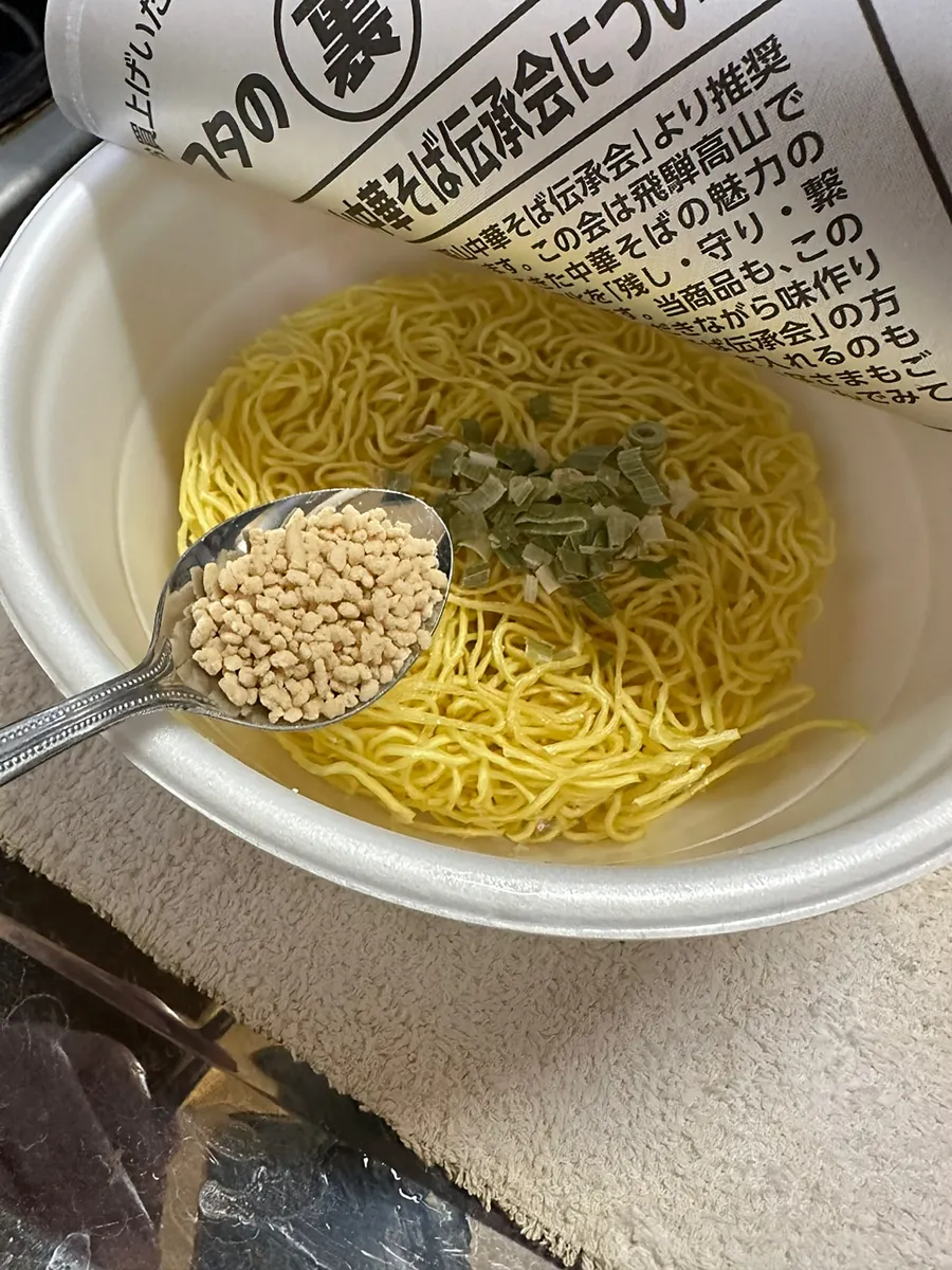 3分経った後で入れてもいいですけどね。レシピなしのオリジナルなんで。