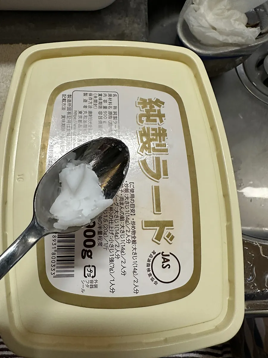 そして出汁を注いで3分。なんですけど待てずにラードを入れちゃいました。