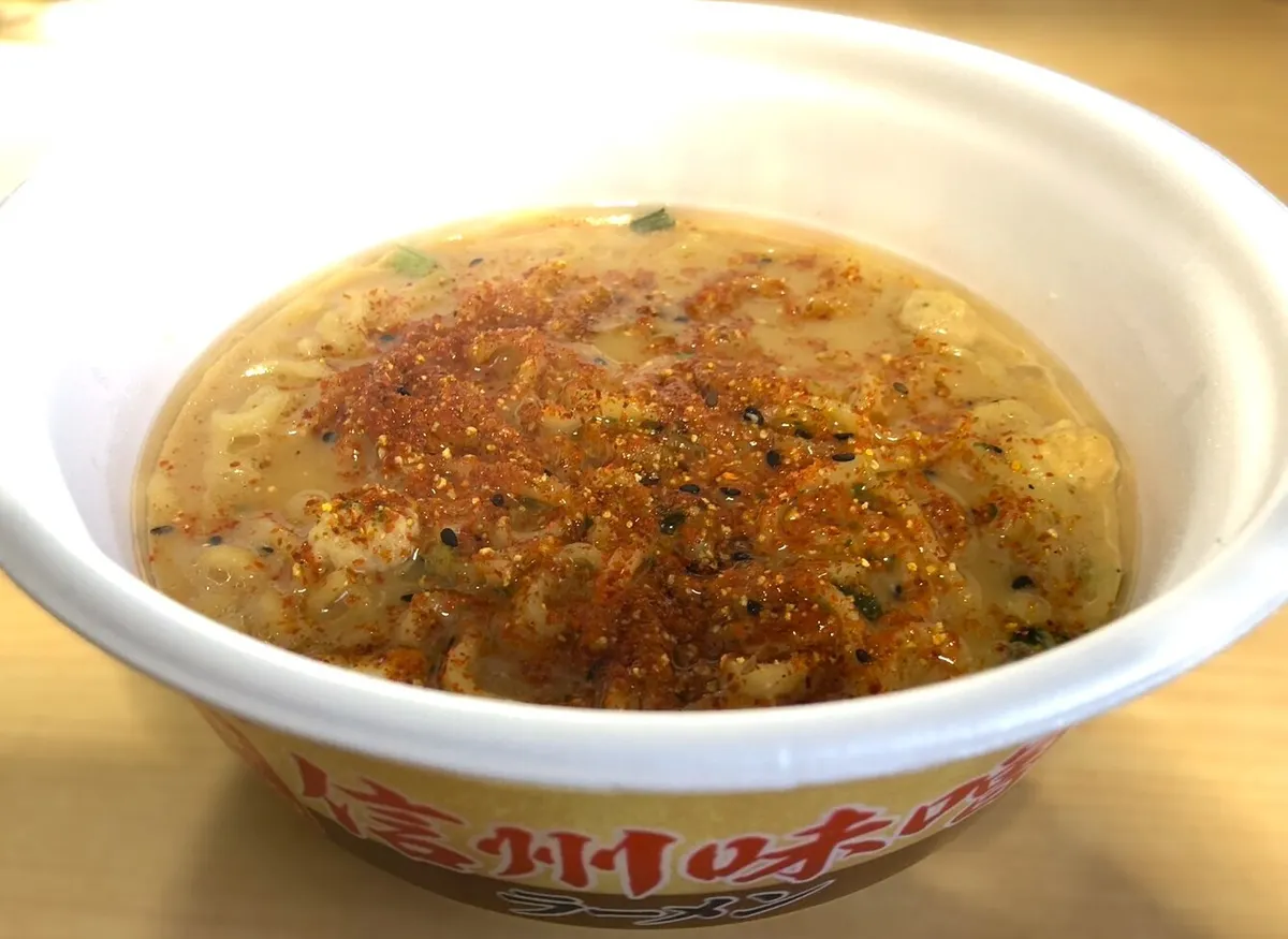 └追加で投下した、大辛七味唐辛子もピリ辛で、味噌の甘みを引き締めた印象