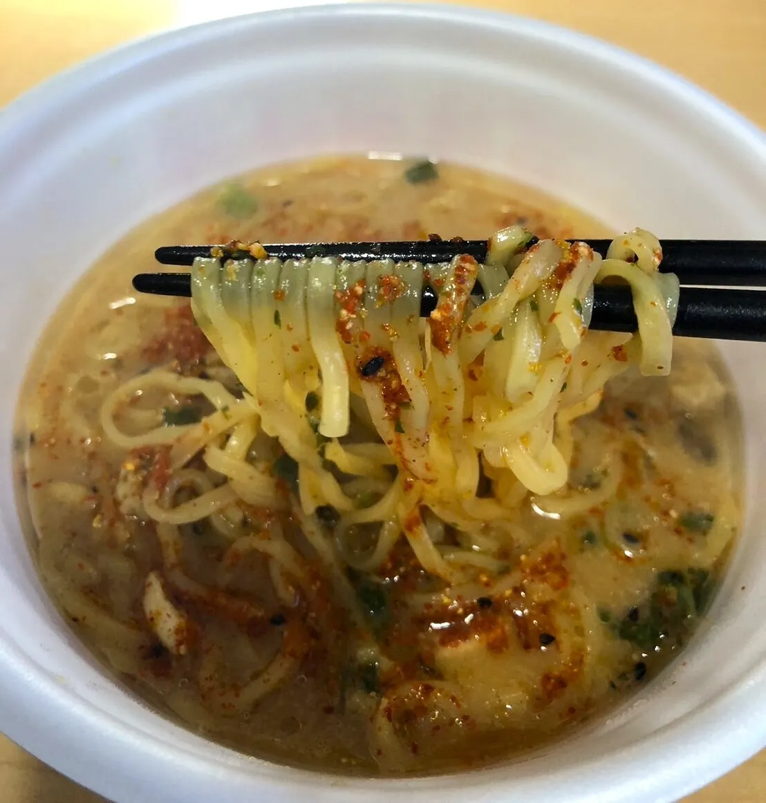 ピリッと七味唐辛子を纏った麺が味噌とも相まって大変相性が良いです!