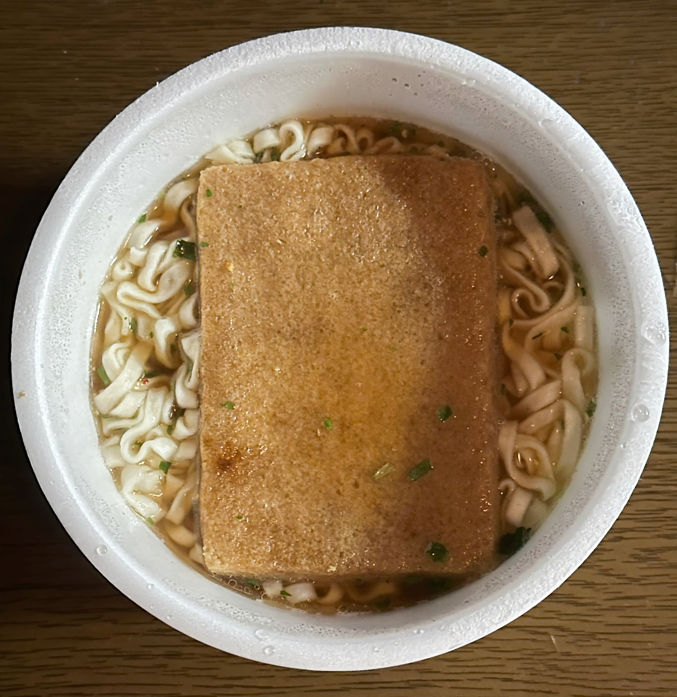 麺はマルちゃんの赤いきつねと似ていたのを思い出しました🌇