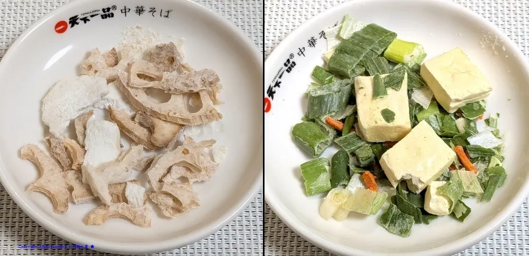 具材は小袋が2袋あって、片方は里芋とれんこん、もう一方は豆腐、ねぎ、にんじんです