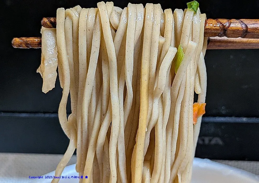 ちょっと太めでエッジの立った麺の舌触り、麺の香り、歯ごたえが最高ですね~♬