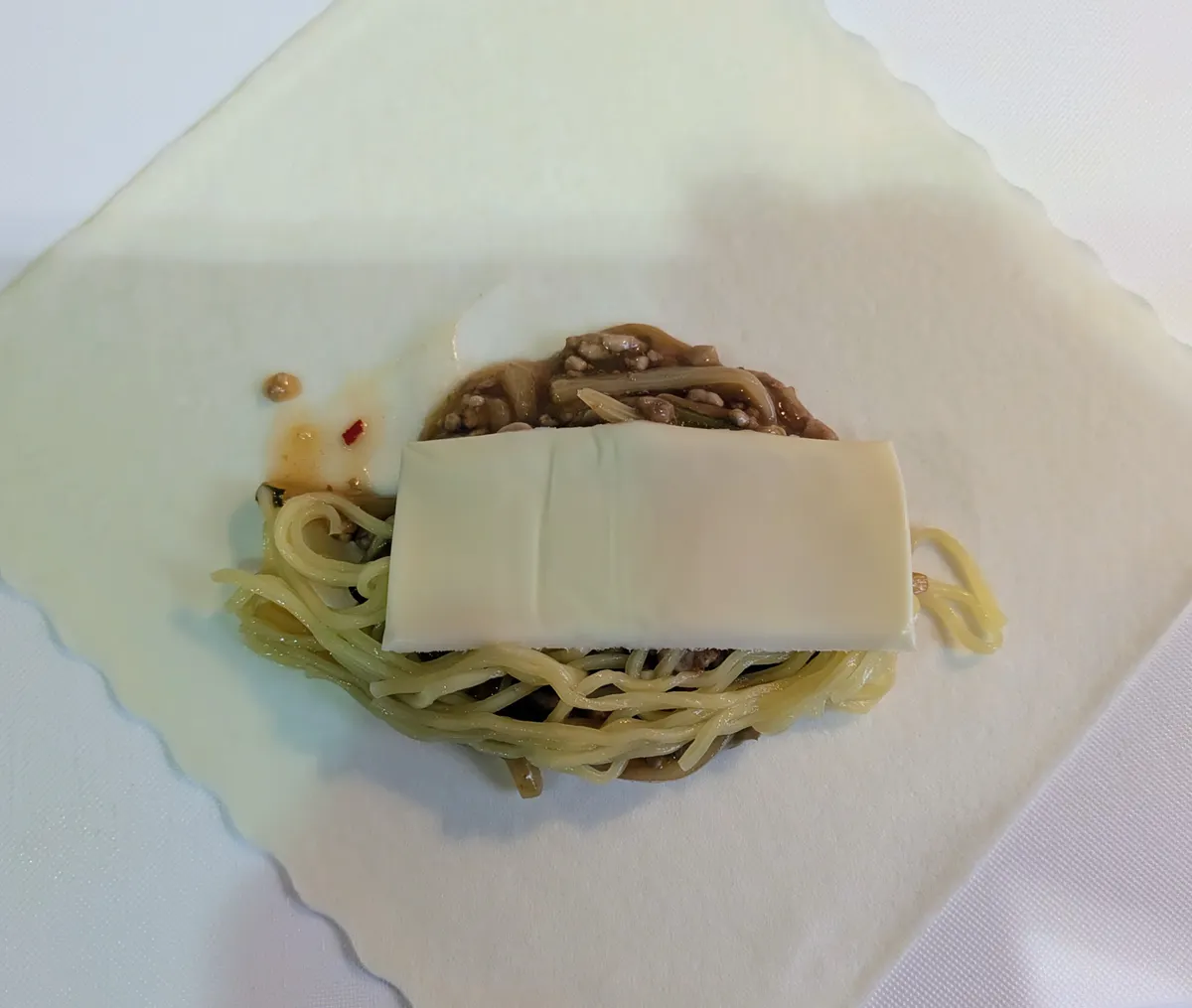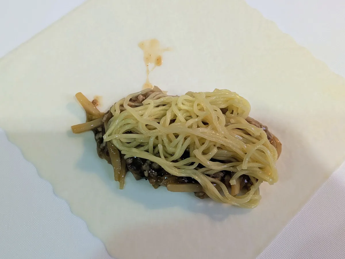冷ましたスタミナ餡に麺