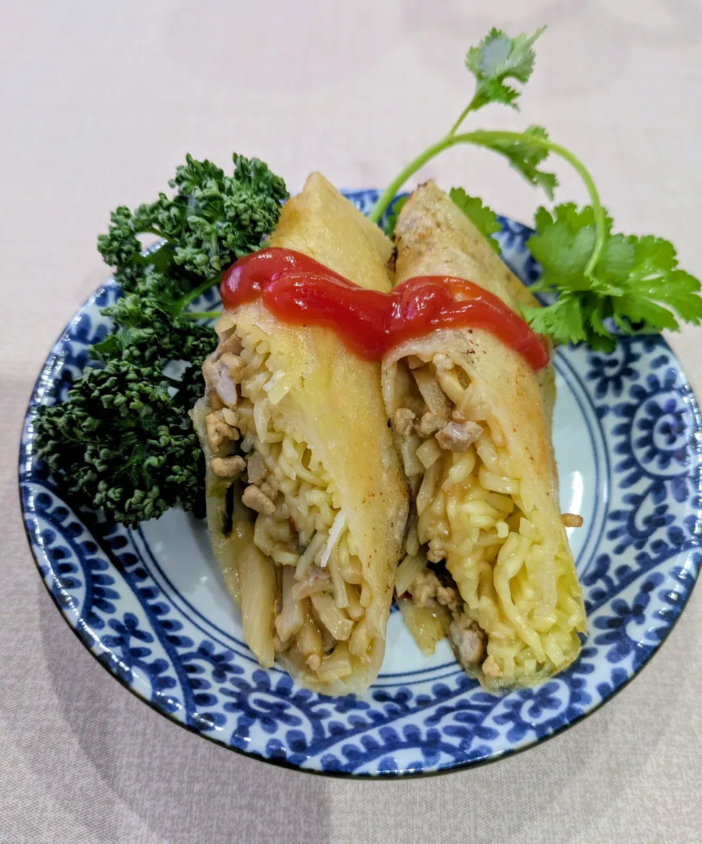 埼玉スタミナラーメンを春巻きにしてつまみに