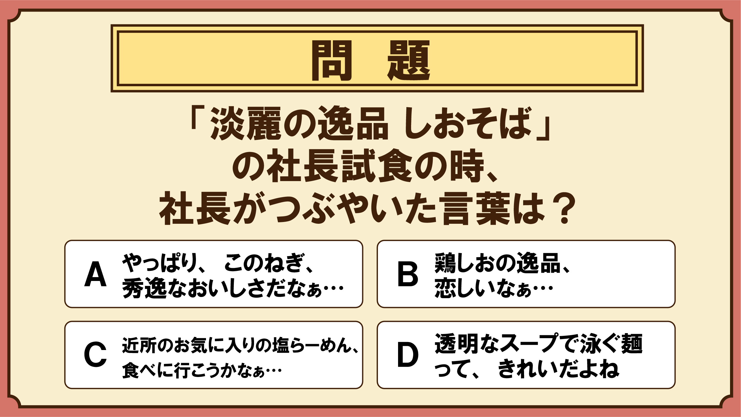 第4回は、3月16日に発売された「淡麗の逸品 しおそば」から出題!