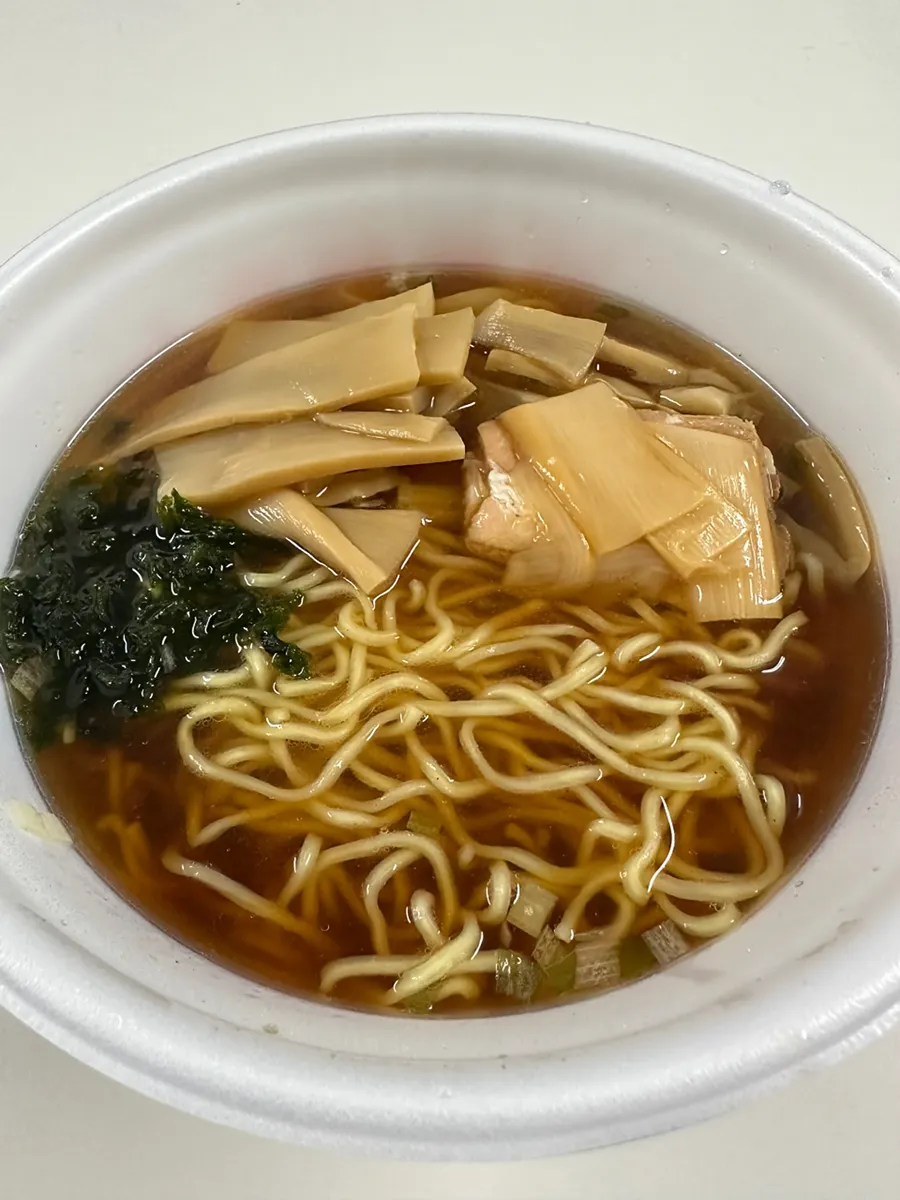 トッピングはシナチク一袋、あおさ少々ですね。思ったんですがあおさは物によって塩加減が違うので青のりの方がよいかもしれません。シナチクも一袋投入してしまうとスープの味に影響するかもしれません。漬けてある液体に多少酸味があります。何事もほどよくってやつですかね😅