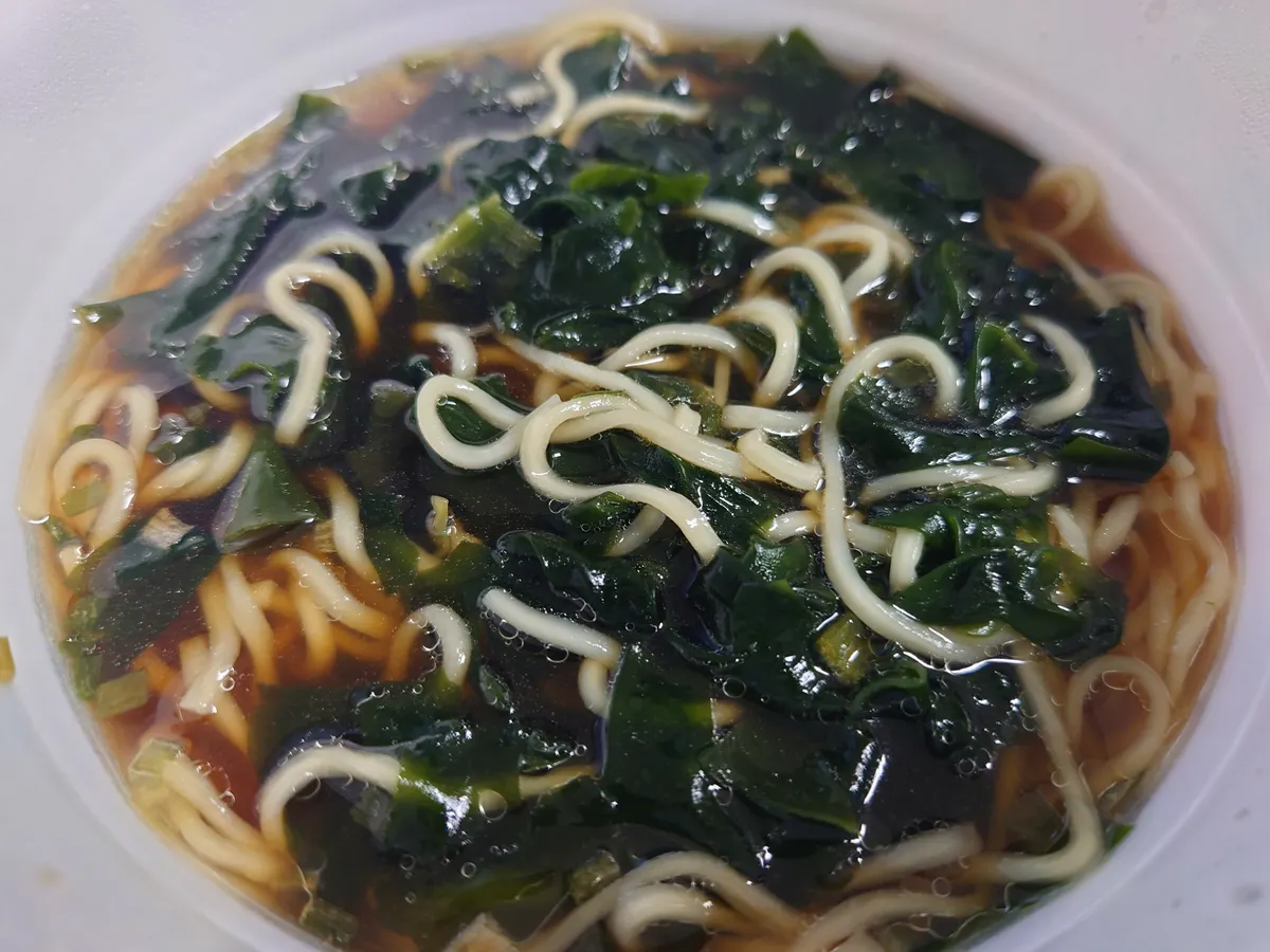 投稿を表示最初はノーマルな味を楽しんでから、後半、ワカメを投入しましたが、塩分高くなるので次からは別の器で戻して投入しようと思います。