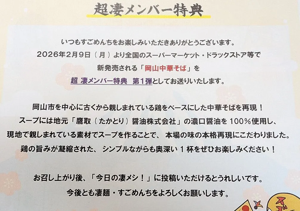 その新商品は「岡山中華そば」、2/9(月)新発売です!