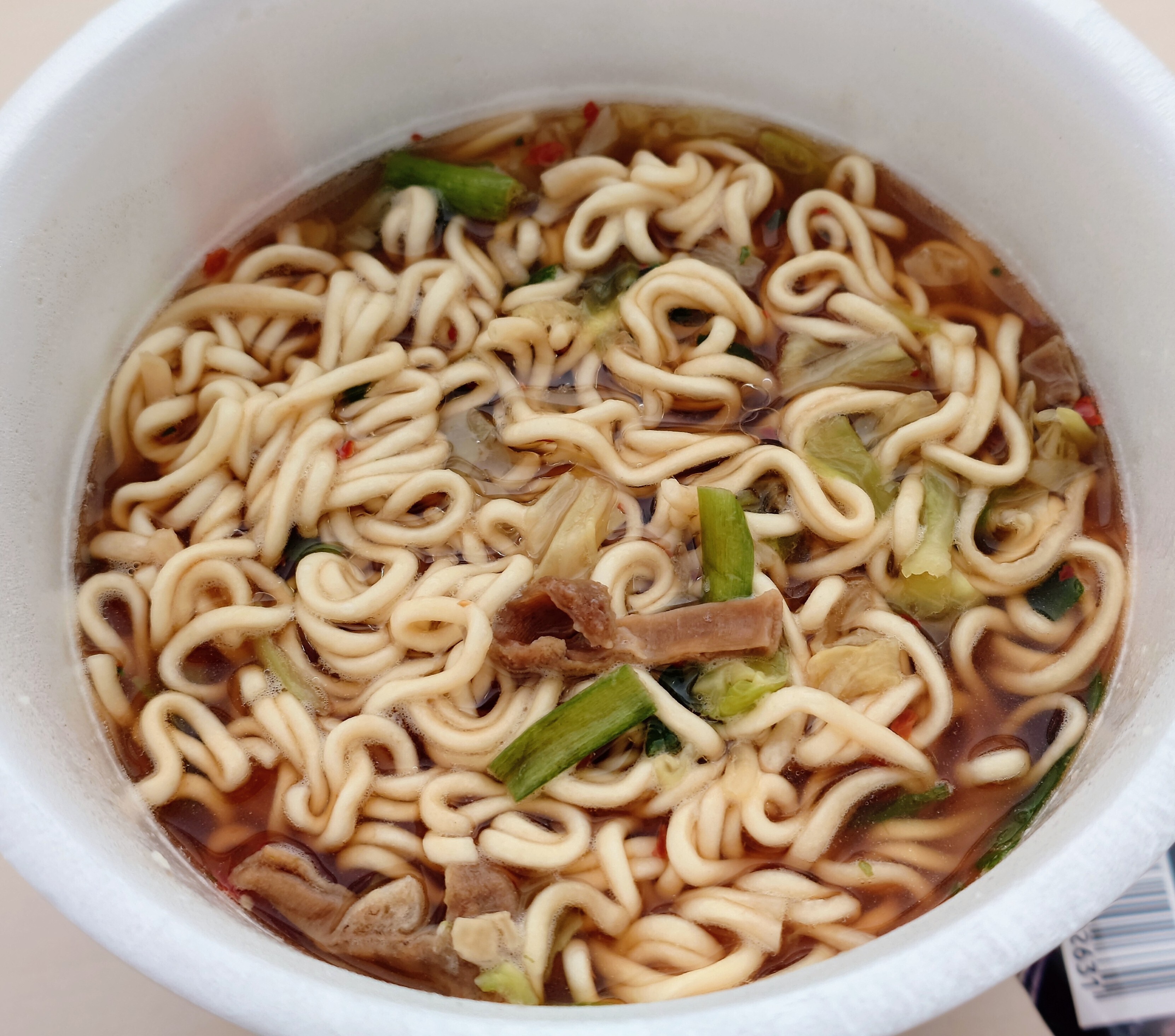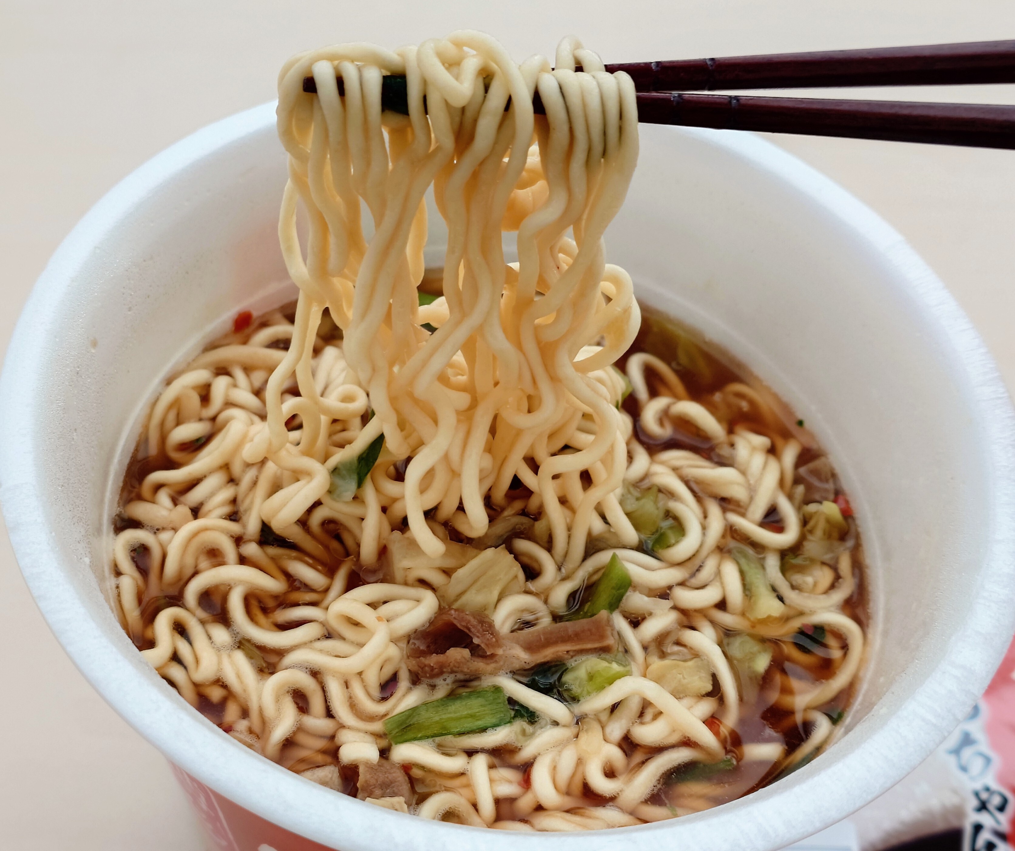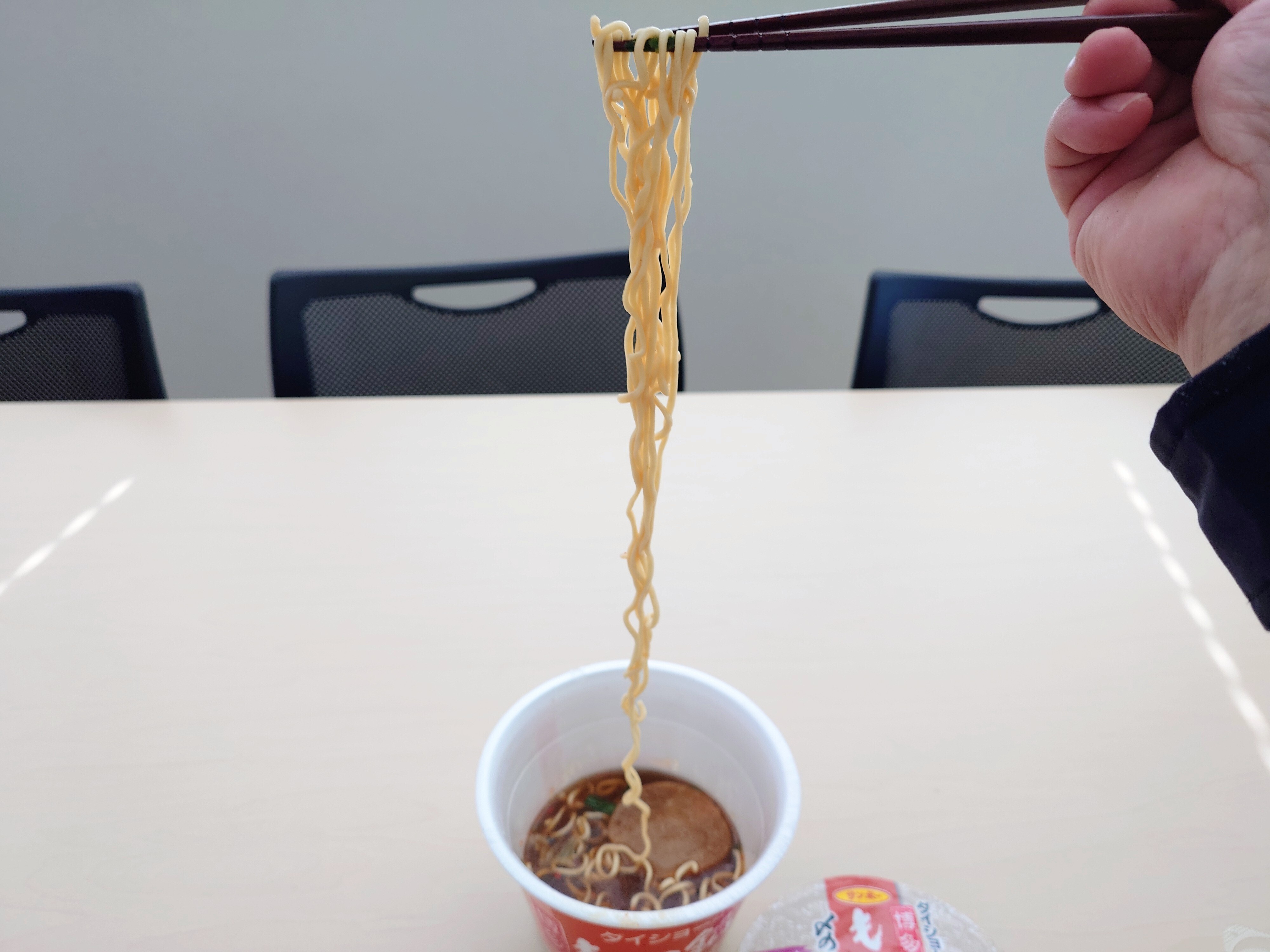 食べていて思ったのですが、なんか麺が長くない? と思って持ち上げてみたら、結構な長さでした。
