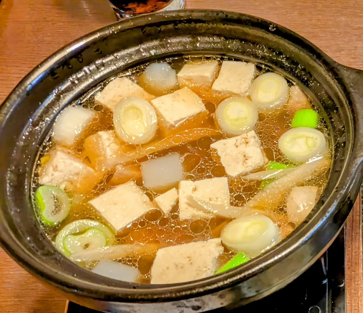 鴨鍋のスープがめちゃくちゃ美味しそうです!