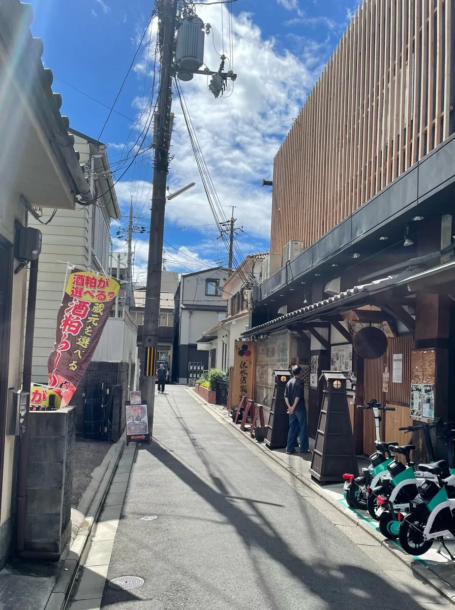 伏水酒蔵小路(写真右)は、伏見酒造組合18の蔵元の清酒が楽しめる酒造バーや京都で人気の料理専門店が集まったいわゆる屋台村。