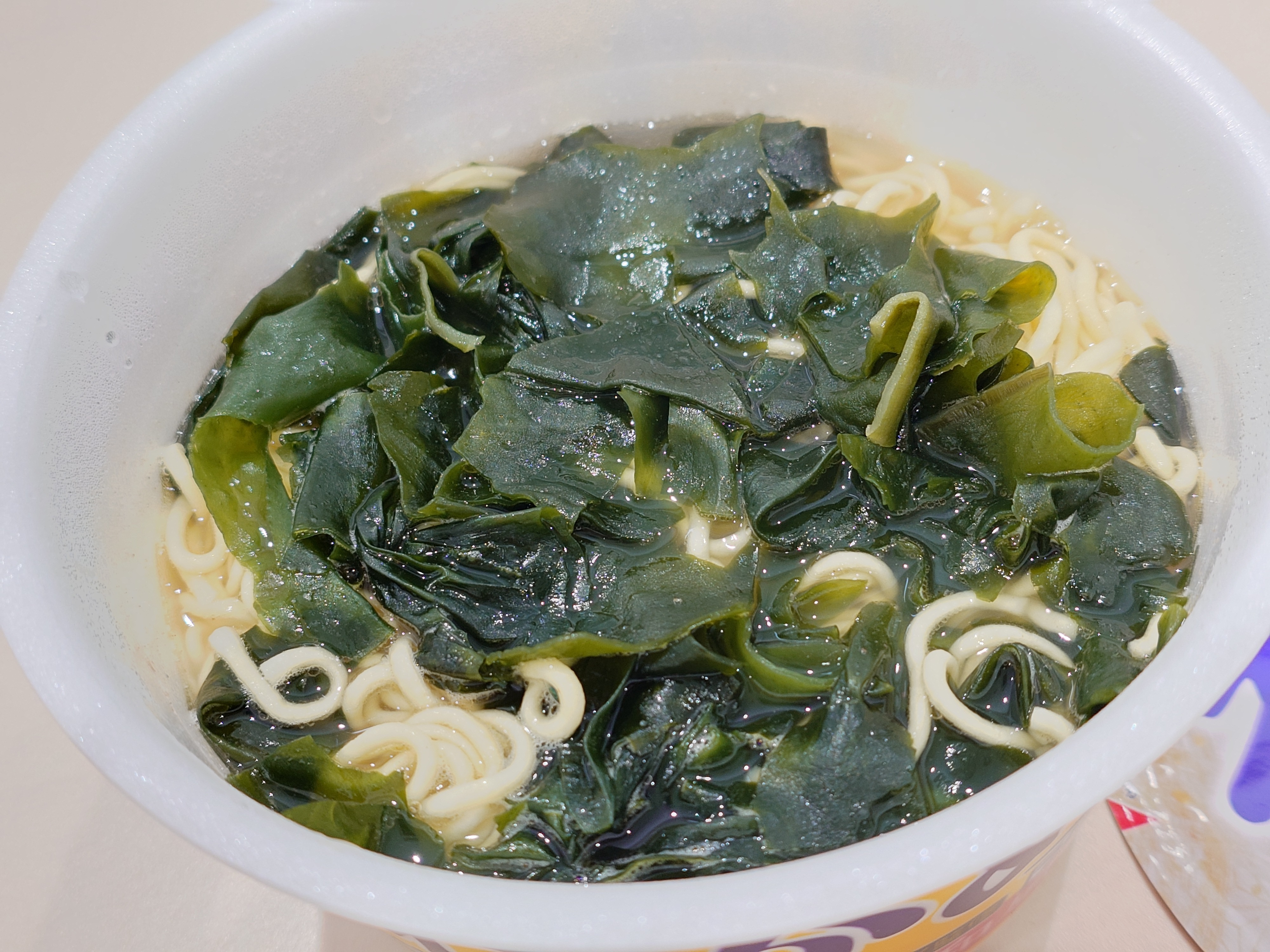 今朝は「わかめラーメン スイッチコラボ」をいただきました。まぁ、在庫処分ということですが。