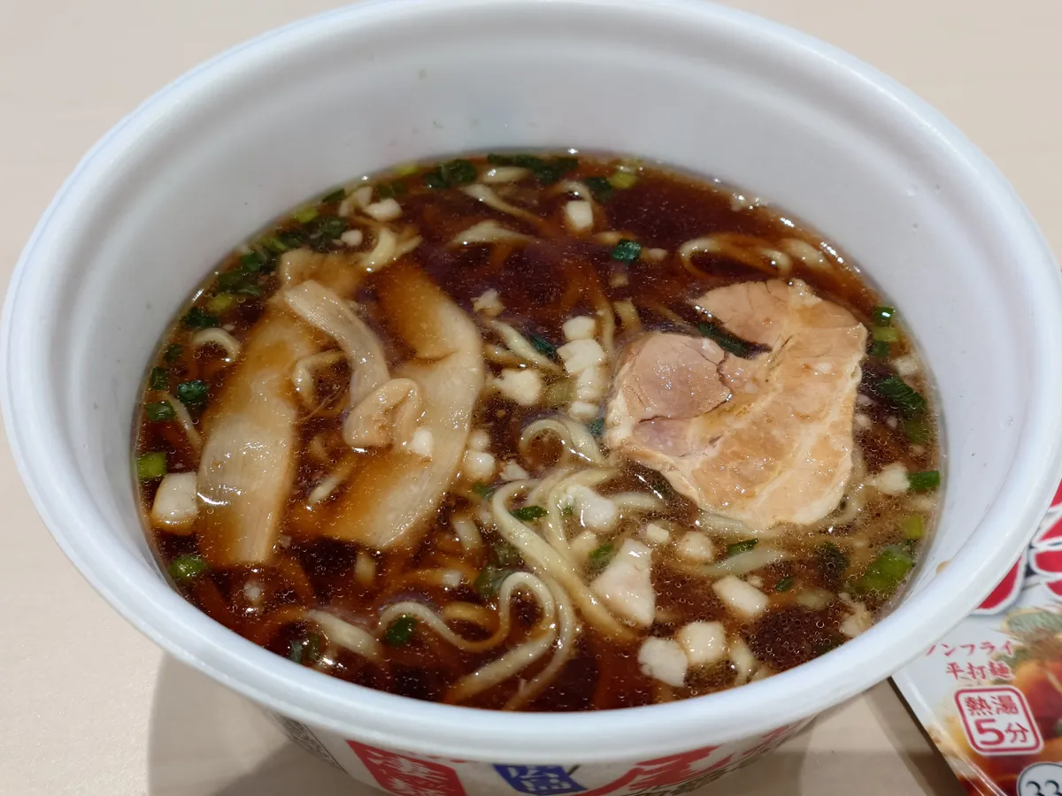 トップ > 今日の凄メシ! > 凄麺 食べました! > 今日は「尾道」です 中電前の八百屋 2026/01/22 10:58 今日は「尾道」です 今朝は「広島 尾道 中華そば」をいただきました。 この商品も、普段は周りで売ってないものですが、またまた見つけて即購入したものです。 醤油味のスープに、大きめの背脂が浮かんでいますが、食べてみるとスープはコクがあって結構脂っこくない。 平打ち麺にスープが絡んで美味しい。 背脂を箸でつまんで食べて、すかさず麺をすすると脂の甘みとコクが増して、また違った味が楽しめました。 この商品も今日で3回目でした。 ごちそうさまでした。 広島 尾道 背脂 平打ち麺 いいね 共有する 共有する X facebook LINE リンクをコピー コメントする 1 件の返信 (新着順) ミュートしたユーザーの投稿です。 投稿を表示 新華 2026/01/22 17:26 尾道もいいですよねー! "背脂つまんですかさず麺をすする"なんて言われたら空きっ腹直撃です😅 11月のスゴ活からそんなに空いてないのに無性に食べたくなりましたよ😊 いいね 返信する