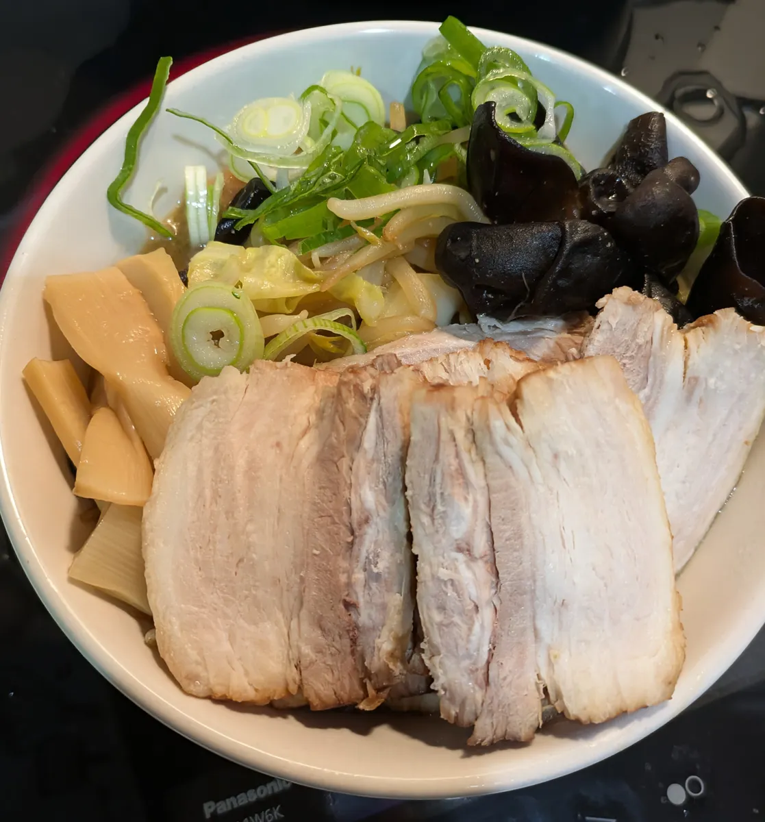 トッピング盛り付ければ味噌ラーメン完成!(妻、息子)
