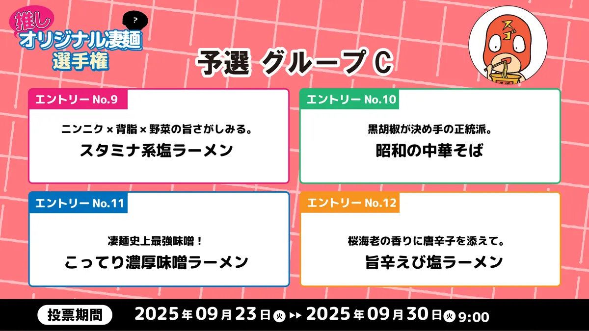 【投票終了・結果公開中】推し『オリジナル凄麺』選手権 予選グループC