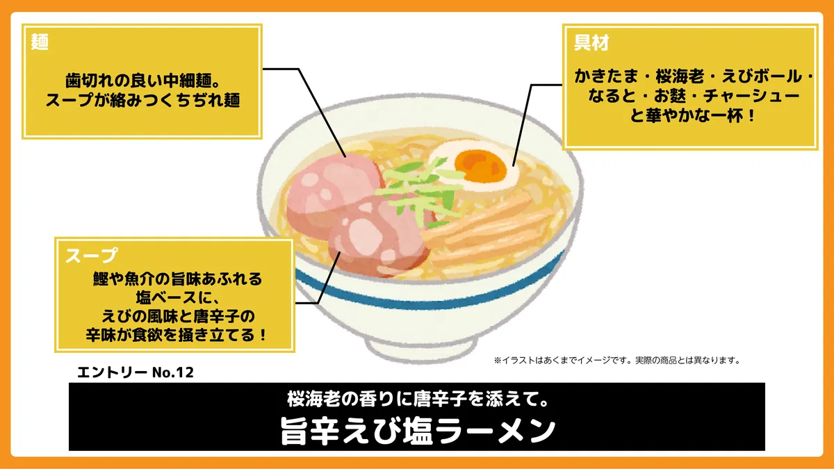 投票の結果「旨辛えび塩ラーメン」に決定!