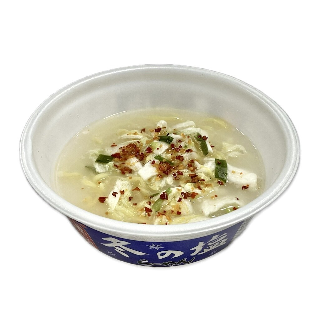 この季節ならではの一杯。まず気に入ったのがスープ。フタの裏ばなしで「背脂の量を昨年の2倍に増やし・・・」と書いてありますが、一口啜ったときにまろやかな味に感じるのは、まさに背脂マシ効果でしょう。ただ、油断して啜っていたら、いきなり、唐辛子のピリ辛が舌に貼り付いてビックリしました💦でも、このピリ辛は「スイカに塩」のようでスープの旨みを引き立てるのにちょうどよかったと思います。白菜のおいしさは相変わらず。お湯で戻したとは思えない食感に、いつもながら感動してしまいます。もちろんプリプリの太麺もスープとよく合っておいしかったです。