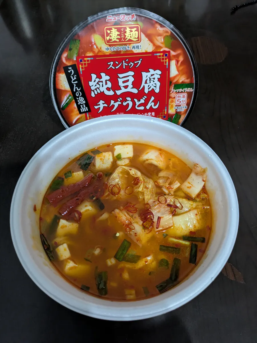 トップ > 今日の凄メシ! > 凄麺 食べました! > やっちゃうよね〜👍️純豆腐ピリ辛チゲうどん くろねこ 2025/10/05 07:12 やっちゃうよね〜👍️純豆腐ピリ辛チゲうどん 昨日今日でスゴ活終えます今回はこちら😊はいドン‼️ 純豆腐チゲうどんに大阪キムチ、唐辛子2本、刻み唐辛子1本分のトッピングです✨️ 辛さ控えめに仕上がりましたね😊 ツルツルコシのあるうどんに旨味のあるピリ辛スープが絡み 美味しいですね。柔らか豆腐の優しい味わいが引き立ちます。 シメはやっぱりこれ🍚 白飯に生卵1つをスープにダイブ\(^o^)/やっちゃうよ! 生卵の力で辛さが抑えられマイルドに 最後まで美味しく頂きました😊ご馳走様でした! スゴ活 うどんの逸品純豆腐チゲうどん いいね 共有する 共有する X facebook LINE リンクをコピー コメントする 1 件の返信 (新着順) ミュートしたユーザーの投稿です。 投稿を表示 新華 2025/10/05 11:23 唐辛子🌶️🌶️と刻み唐辛子、それにキムチも足して「辛さ控えめに仕上がりました」とは強者ですね! いいね 返信する