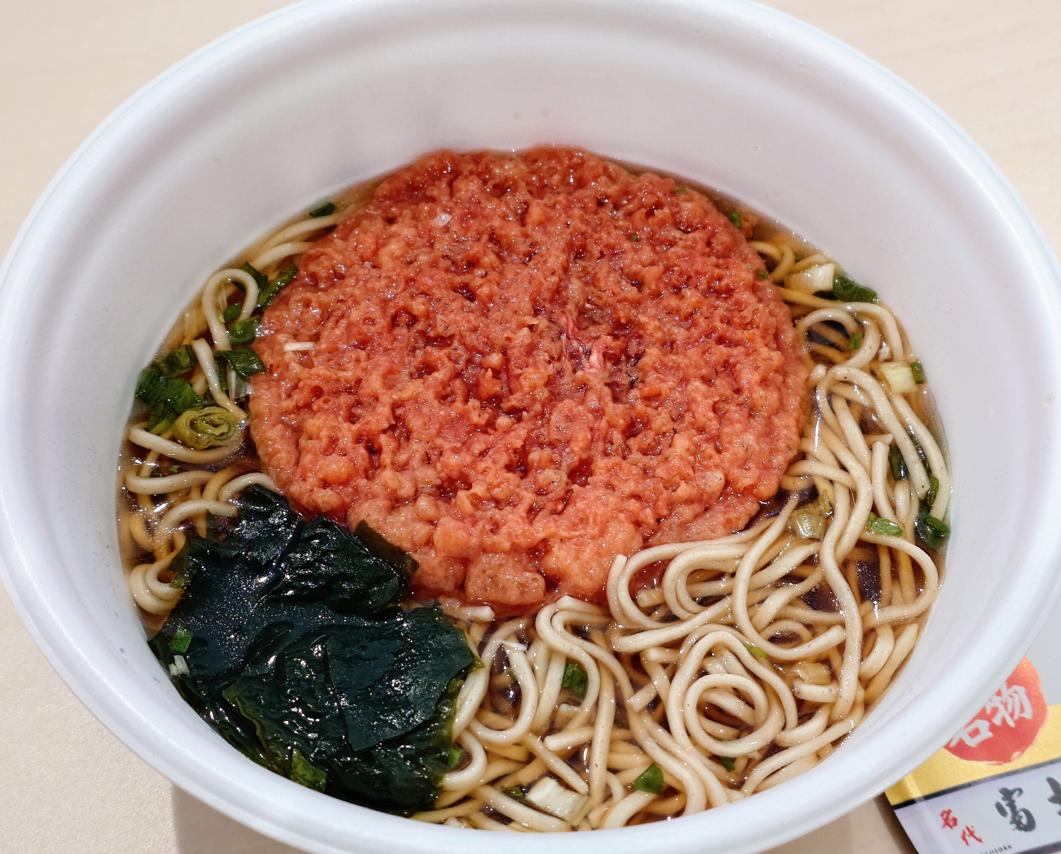 トップ > 今日の凄メシ! > 凄メシ 出会いました! > 本日は「あなたのおそばに」です 中電前の八百屋 2026/04/02 07:45 本日は「あなたのおそばに」です 今朝は「名代 富士そば 紅生姜天そば」をいただきました。 まだ、あと1個、在庫があります。 この蕎麦の出汁は、いい具合に鰹の出汁を効いていて、紅生姜天から滲み出す油と紅生姜の香りが合わさって、大変美味しいです。 蕎麦も、他社のカップ蕎麦の製品とは比べ物にならないほど、歯ごたえや喉越しが良いですね。 ラーメンではないですがお麩を投入。 天ぷらはクタクタになってから、少しずつ崩しながら食べるのが私は好きです。 いつ食べても美味しい蕎麦ですね。 ごちそうさまでした。 富士そば 紅生姜天 東京名物 いいね 共有する 共有する X facebook LINE リンクをコピー コメントする 0 件の返信 (新着順)