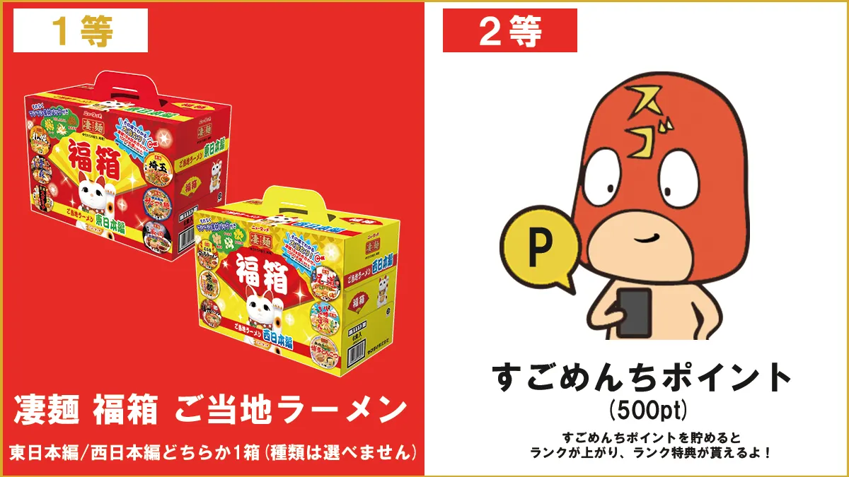 「福箱 ご当地ラーメン」または「すごめんちポイント」!!
