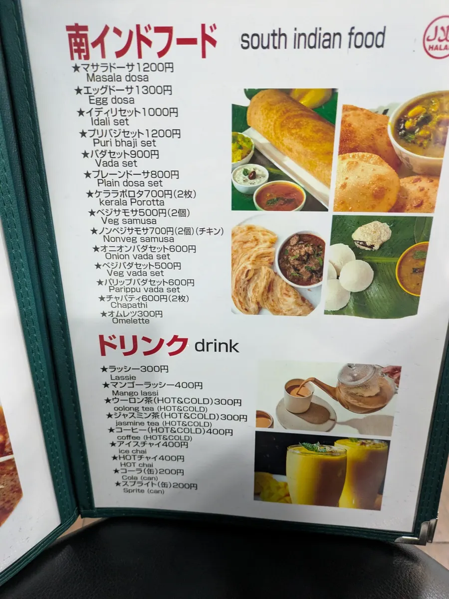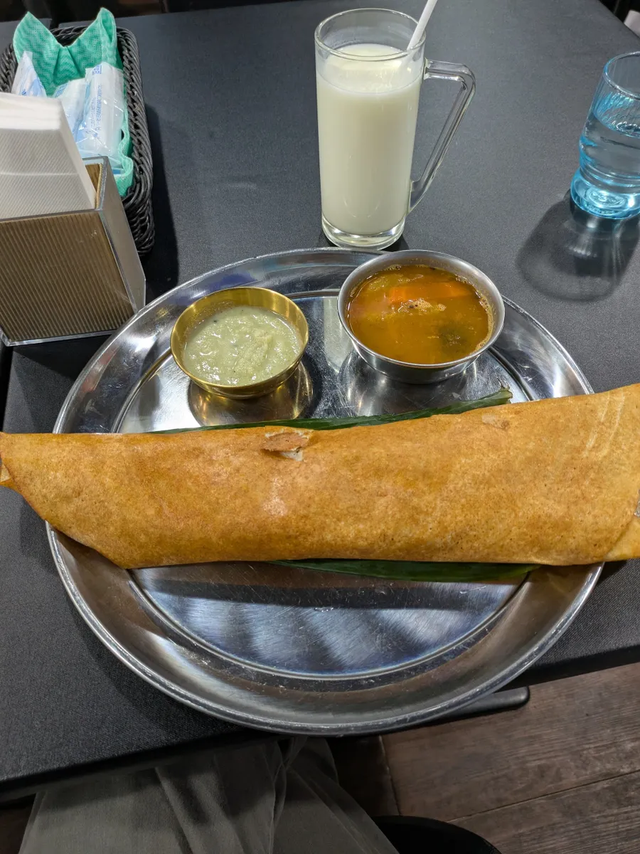 どうもマサラドーサがあるようなガチ南インド料理店は、街中によくあるインド・ネパールカレー店のようなナンと飲物セットは無いっぽい。。